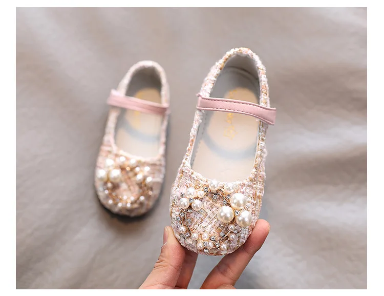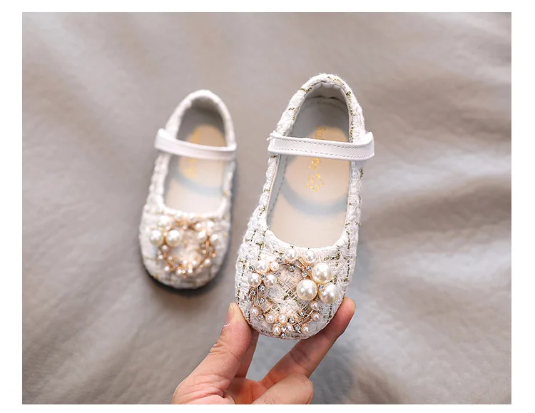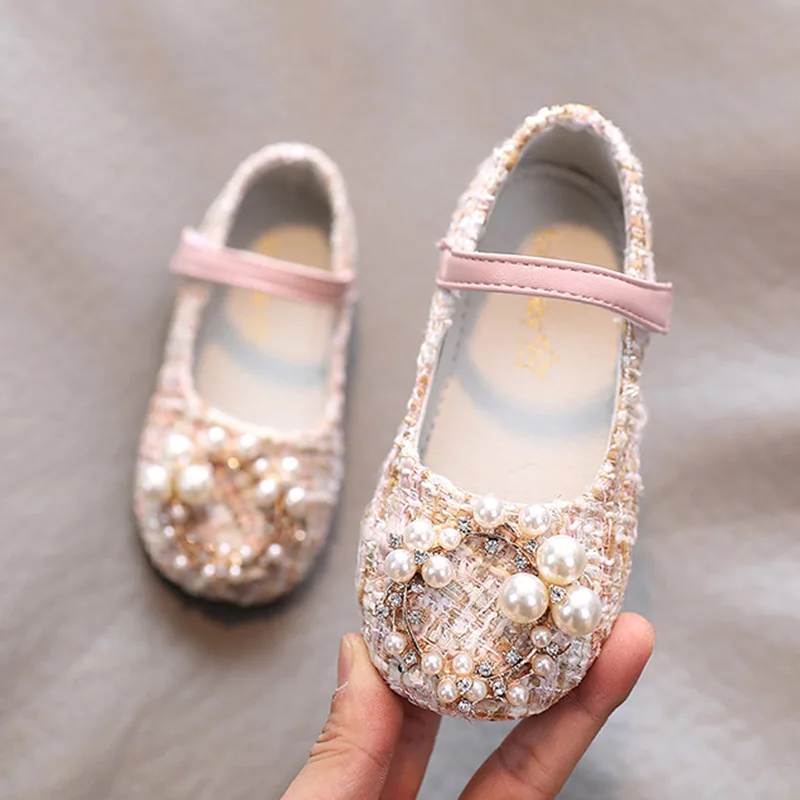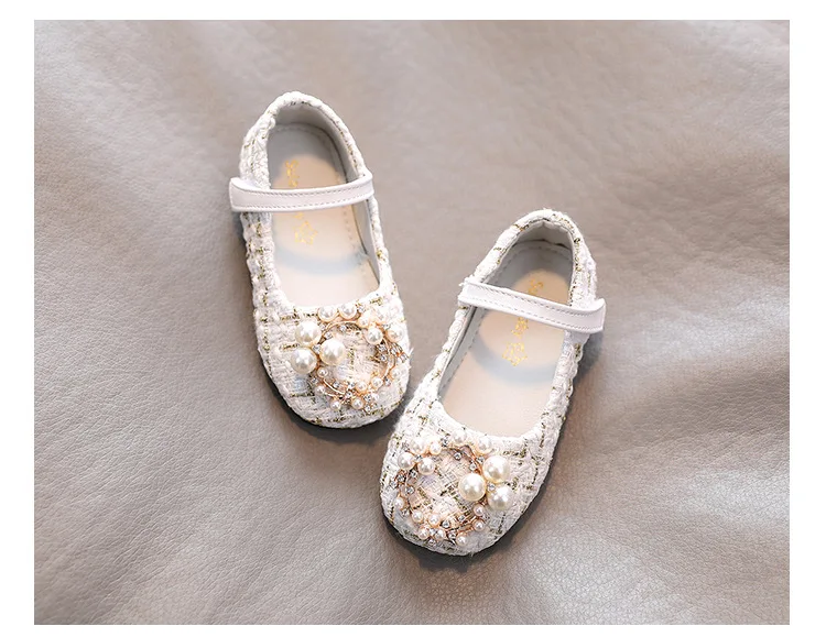 Туфли Мэри Джейн из твида с жемчугом для девочек, теплая шерстяная обувь принцессы, плоская подошва, костюм в клетку, зима-осень 2020