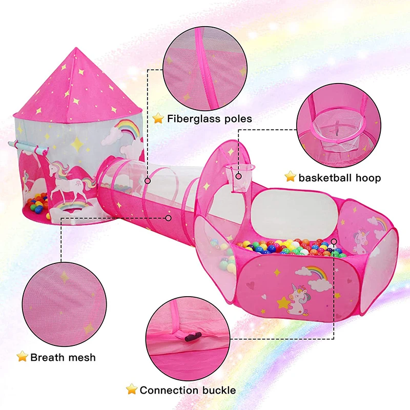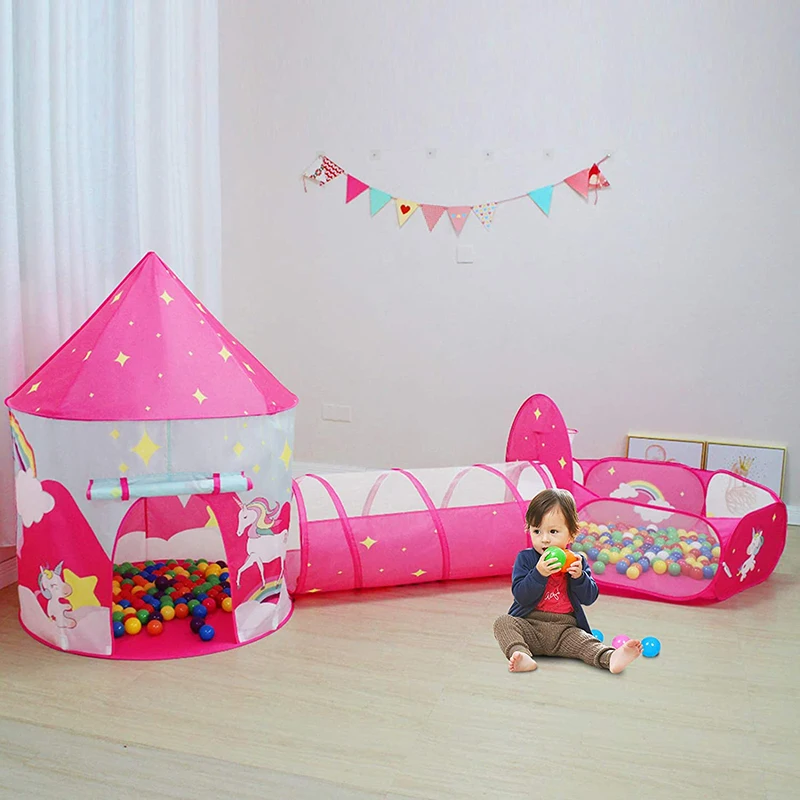 Детский сухой бассейн 3 в 1 для маленьких девочек, детский манеж с воздушными шарами, большая палатка для ползающий ребенок, туннельная игровая площадка