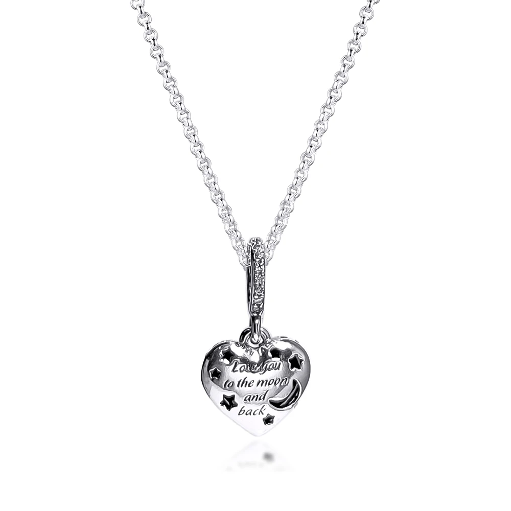 Ожерелье и кулон в виде сердца с голубой Луной и звездами, ювелирные изделия из стерлингового серебра, зимние новые стильные женские модные украшения, цепочка 50 см
