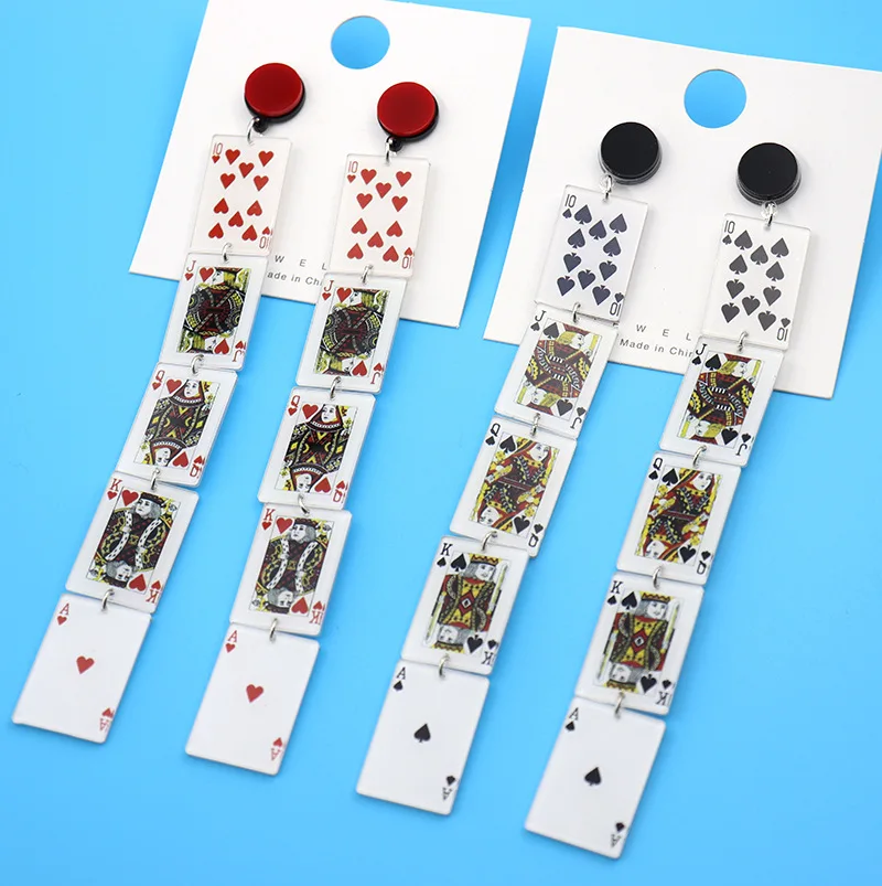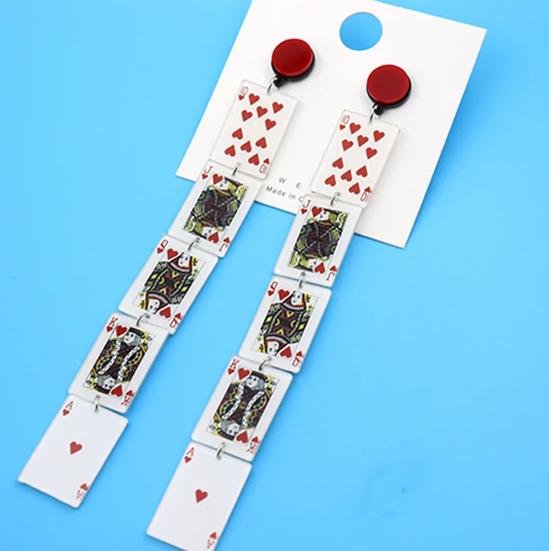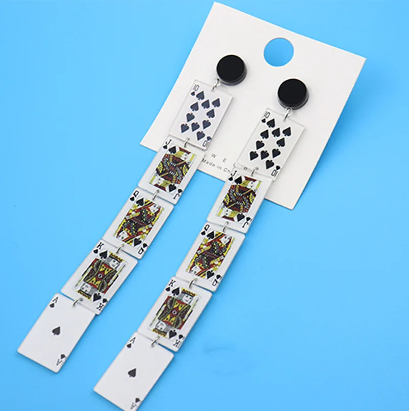 Крутые Длинные акриловые серьги-кисточки в стиле панк с игральными картами женские крупные креативные Висячие серьги для женщин Brincos Mujer