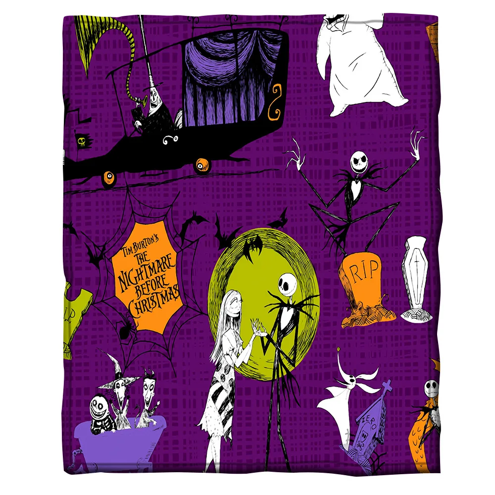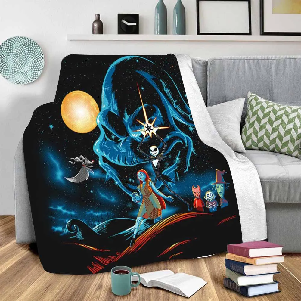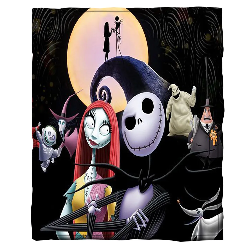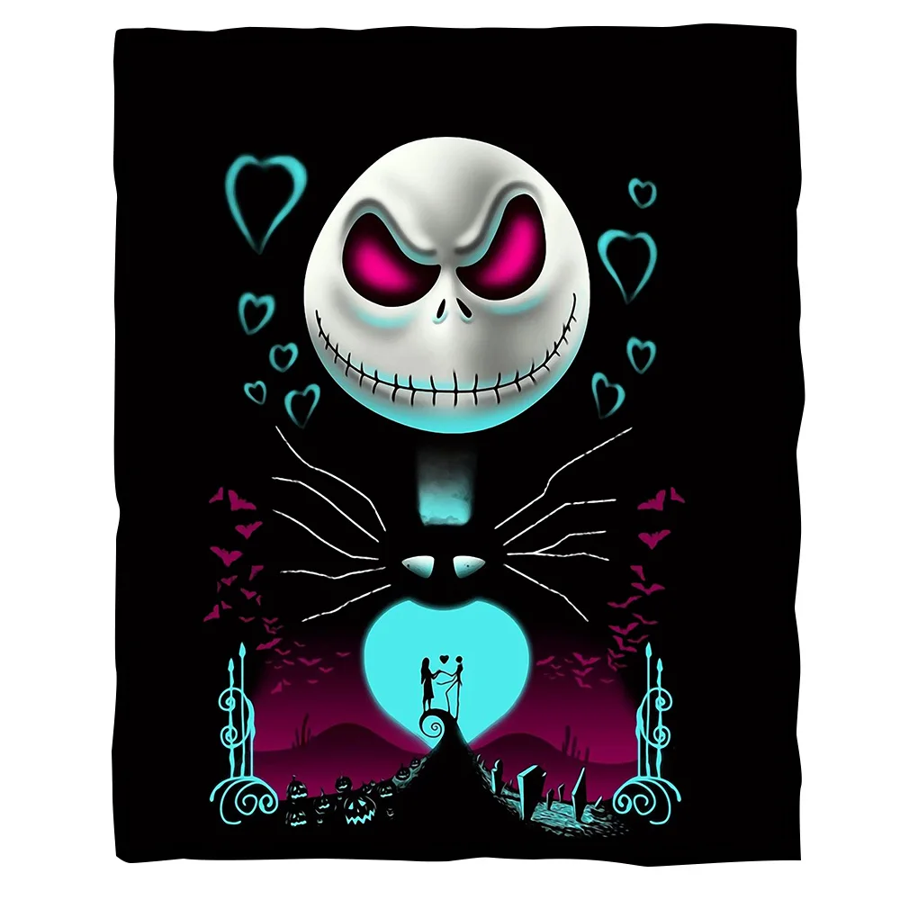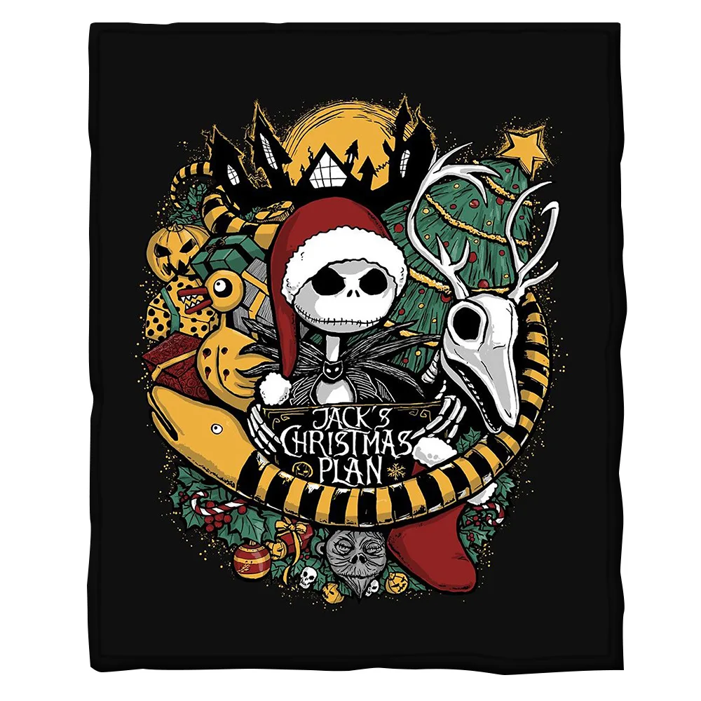 Одеяло из шерпы с изображением черепа кошмара перед рождеством, плюшевый бархат, тёплая простыня мультфильм, офисное одеяло для короткого сна, домашний декор для всей семьи
