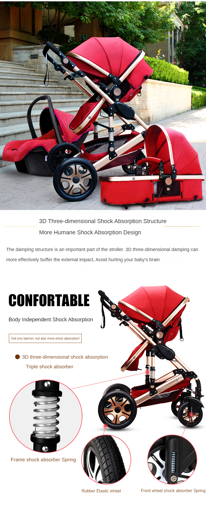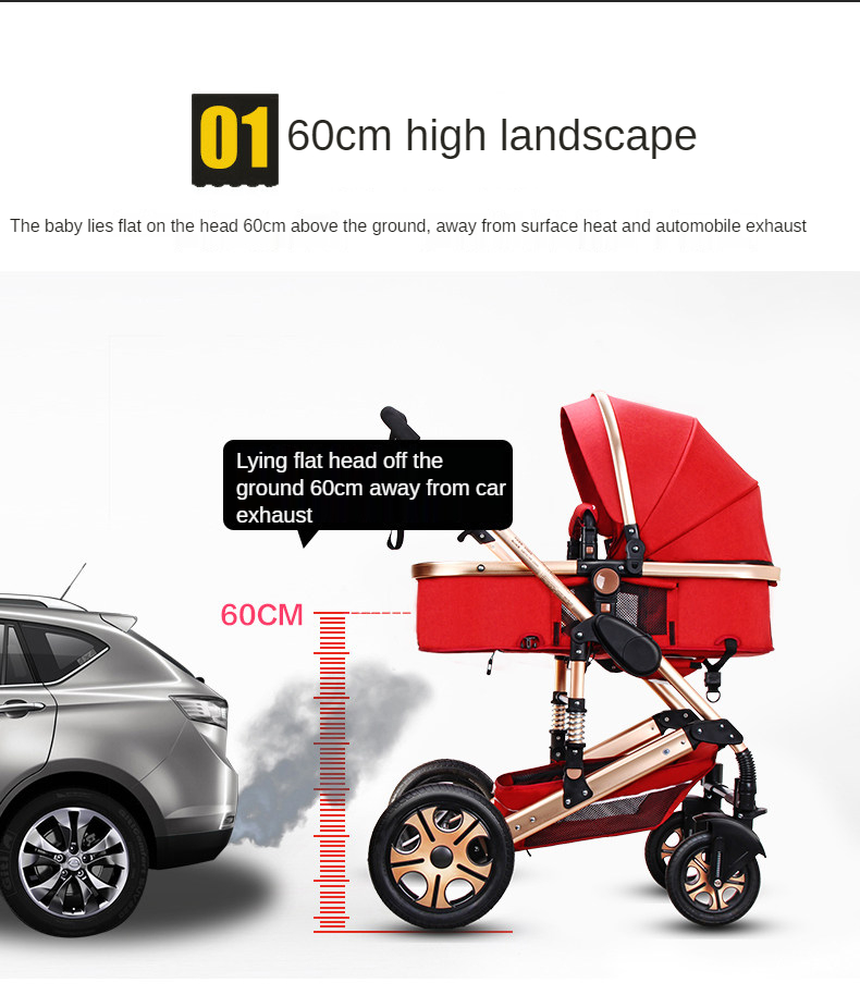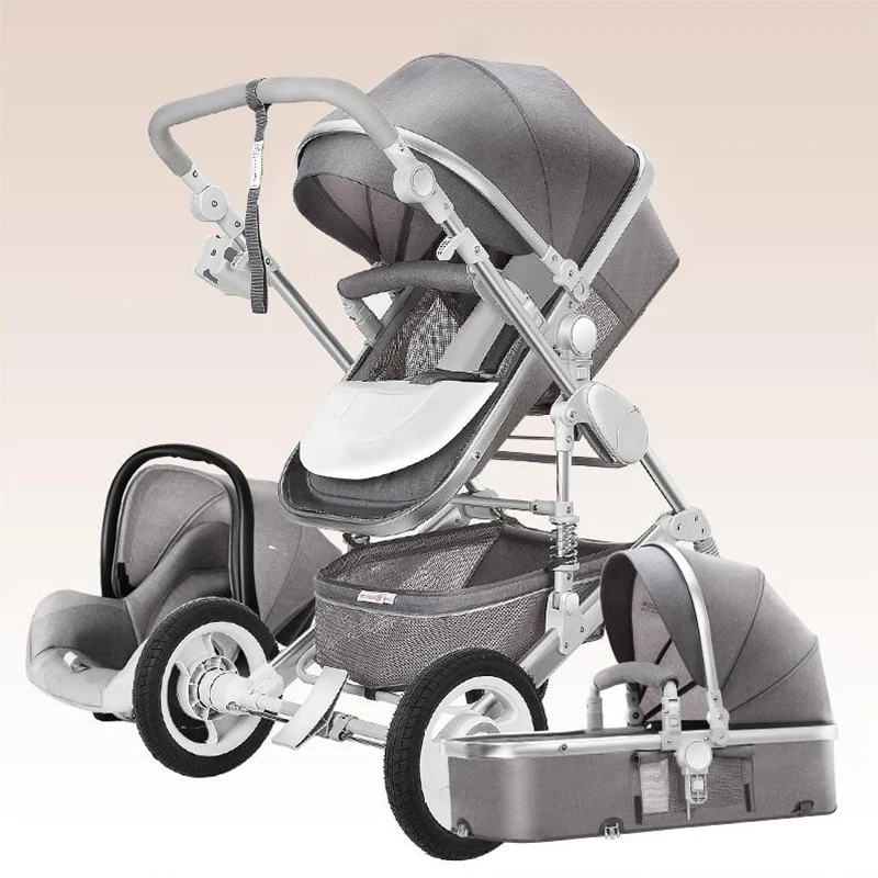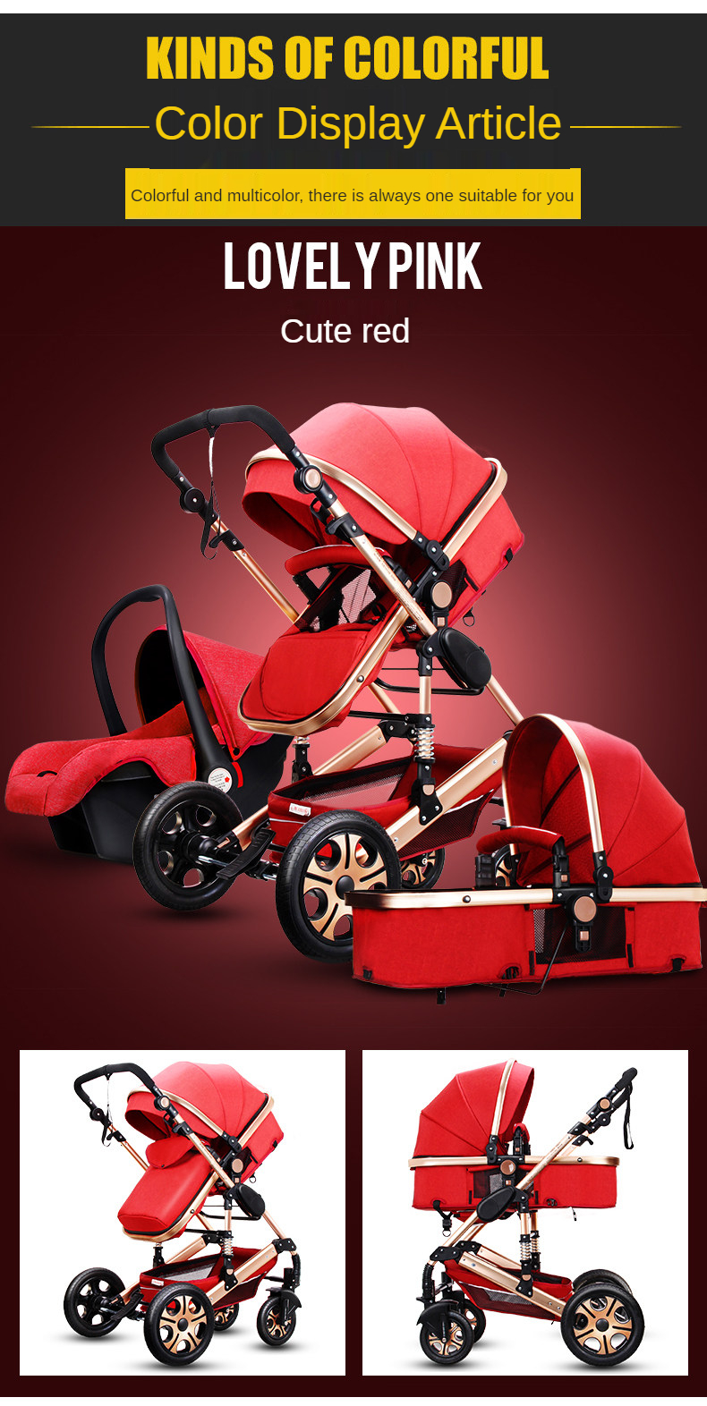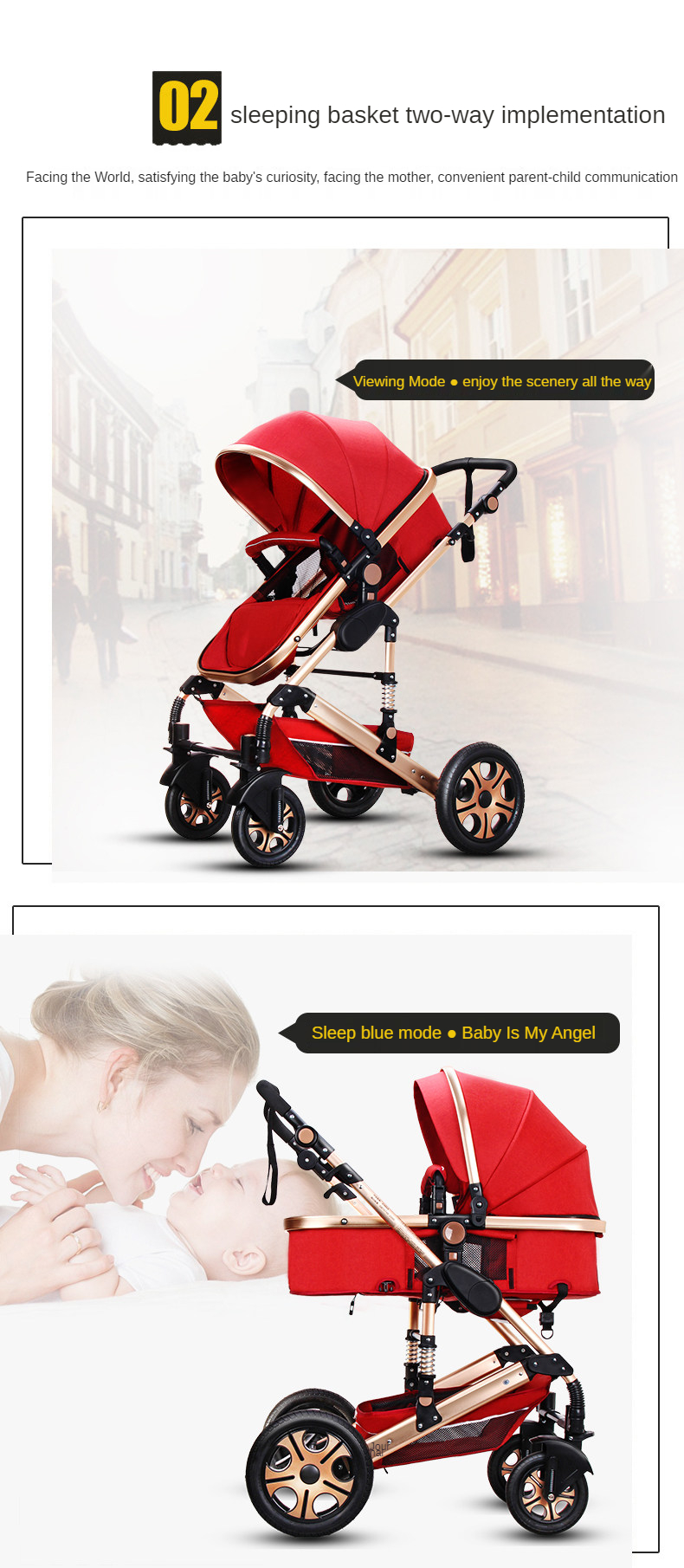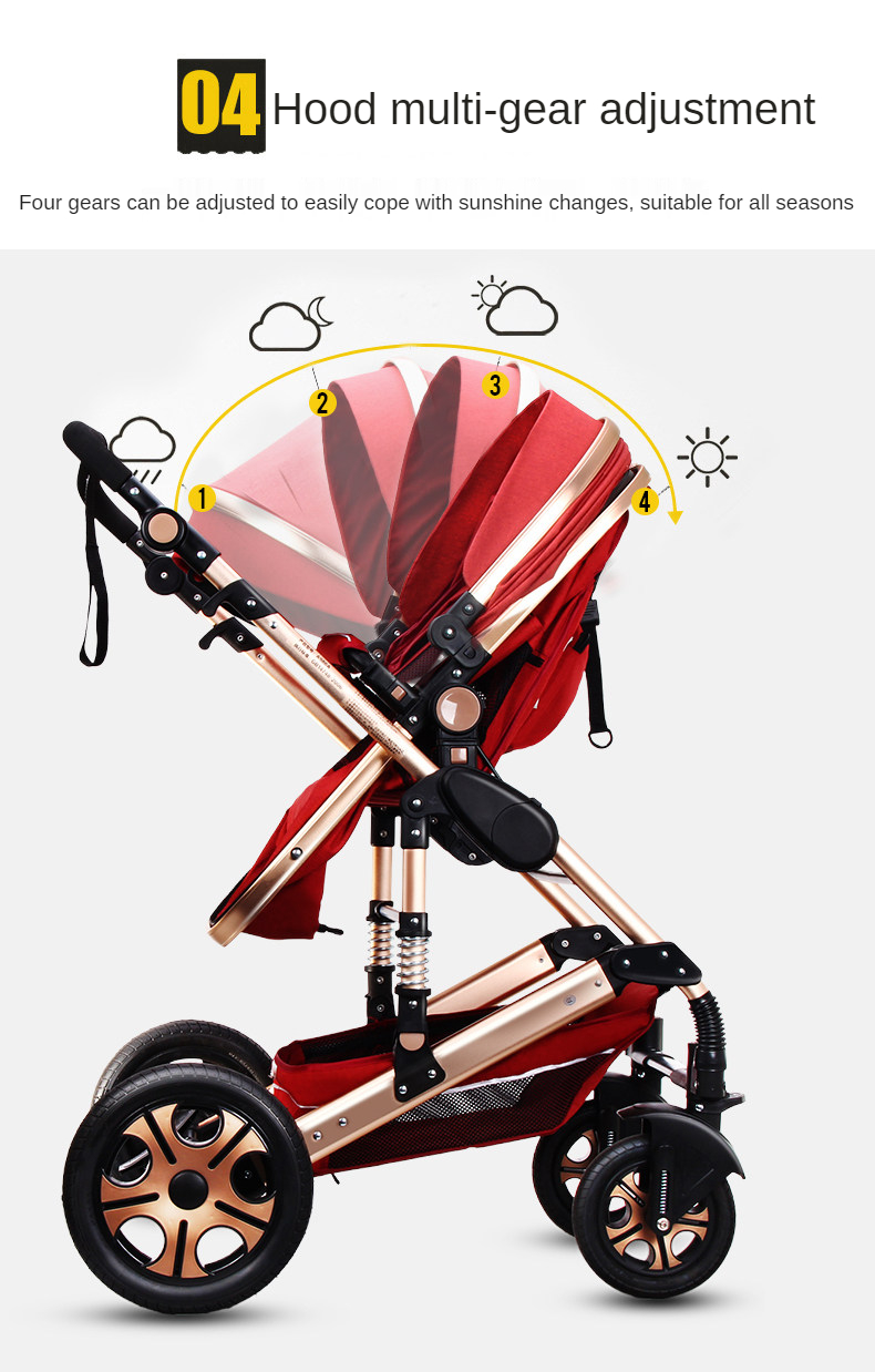Роскошная Складная Многофункциональная коляска 3 в 1, сидячая и откидывающаяся двухсторонняя четырехколесная амортизационная коляска