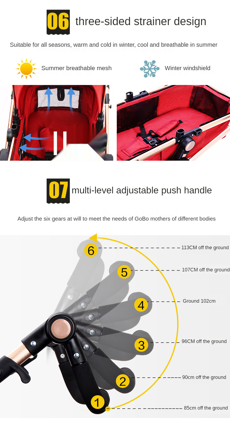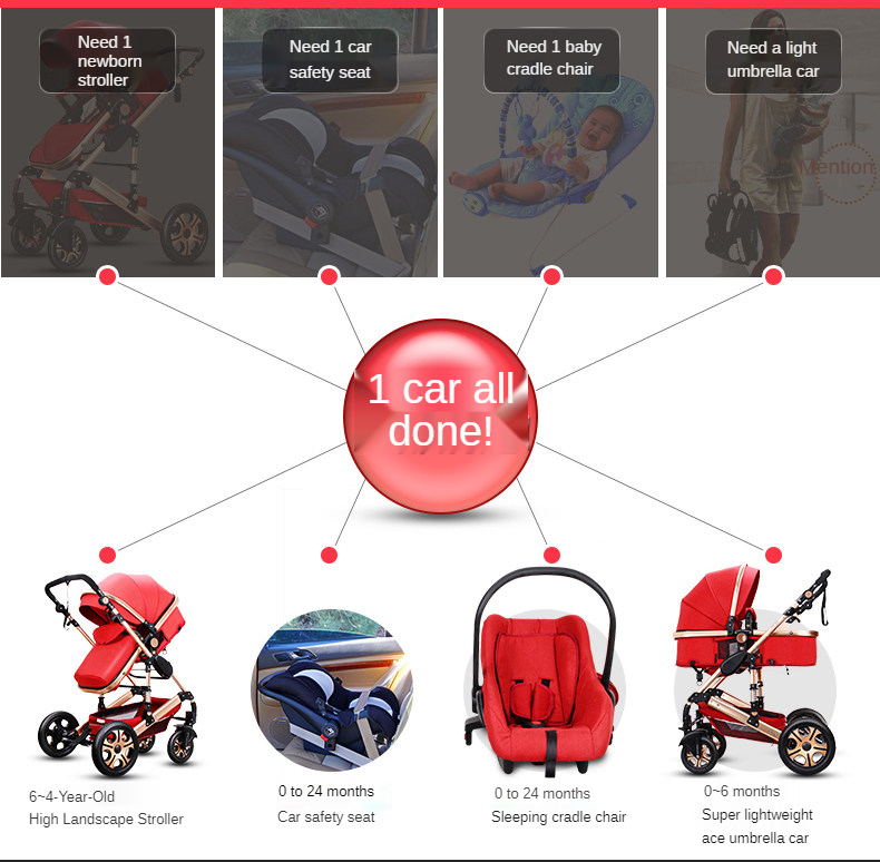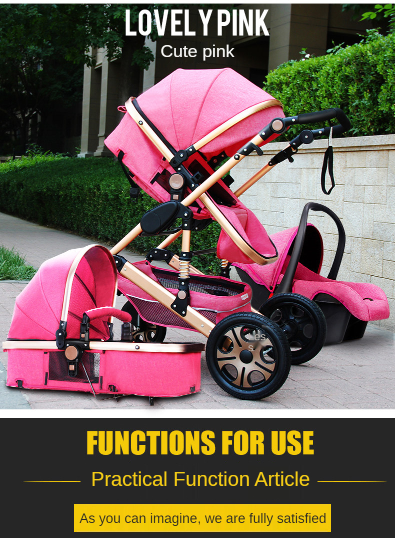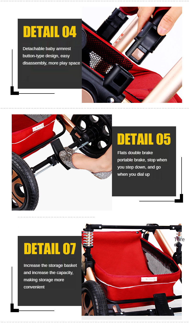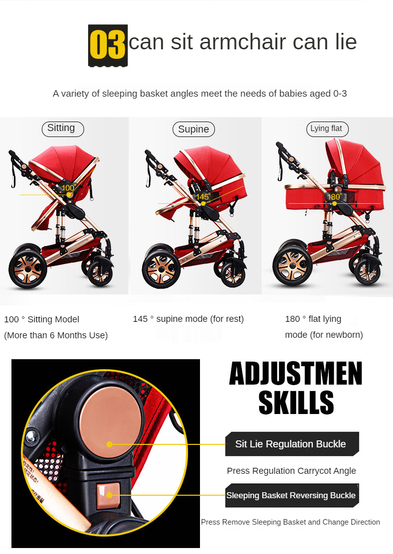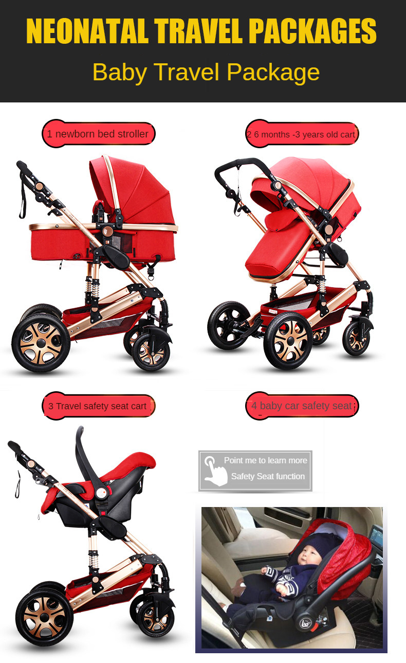 Роскошная Складная Многофункциональная коляска 3 в 1, сидячая и откидывающаяся двухсторонняя четырехколесная амортизационная коляска