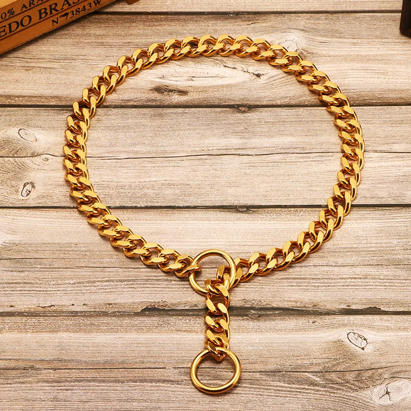 18K позолоченный тренировочный ошейник для собак средних и больших собак из нержавеющей стали дроссельная цепь P для немецкой овчарки металлический поводок аксессуары для домашних животных