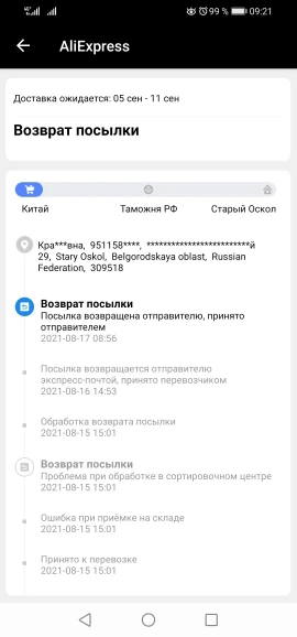 продавец очень быстро отправил заказ, но по какой-то причине почтовая служба вернула заказ обратно продавцу. С продавцом договорились открыть спор для возврата денег.