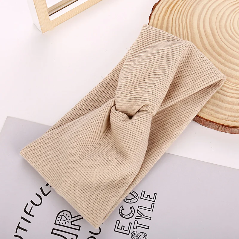 Повязка на голову женская зимняя трикотажная, Эластичный Тюрбан С перехлёстом, теплый однотонный ободок, аксессуары для волос