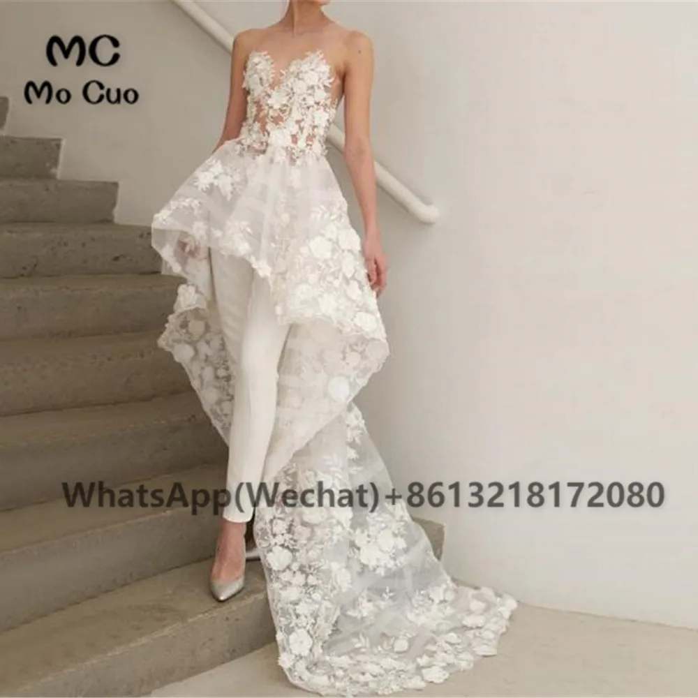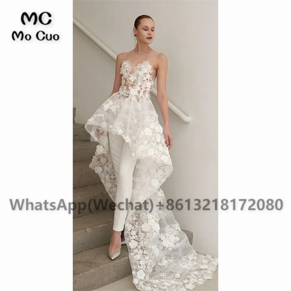 Женский кружевной комбинезон со шлейфом, без рукавов