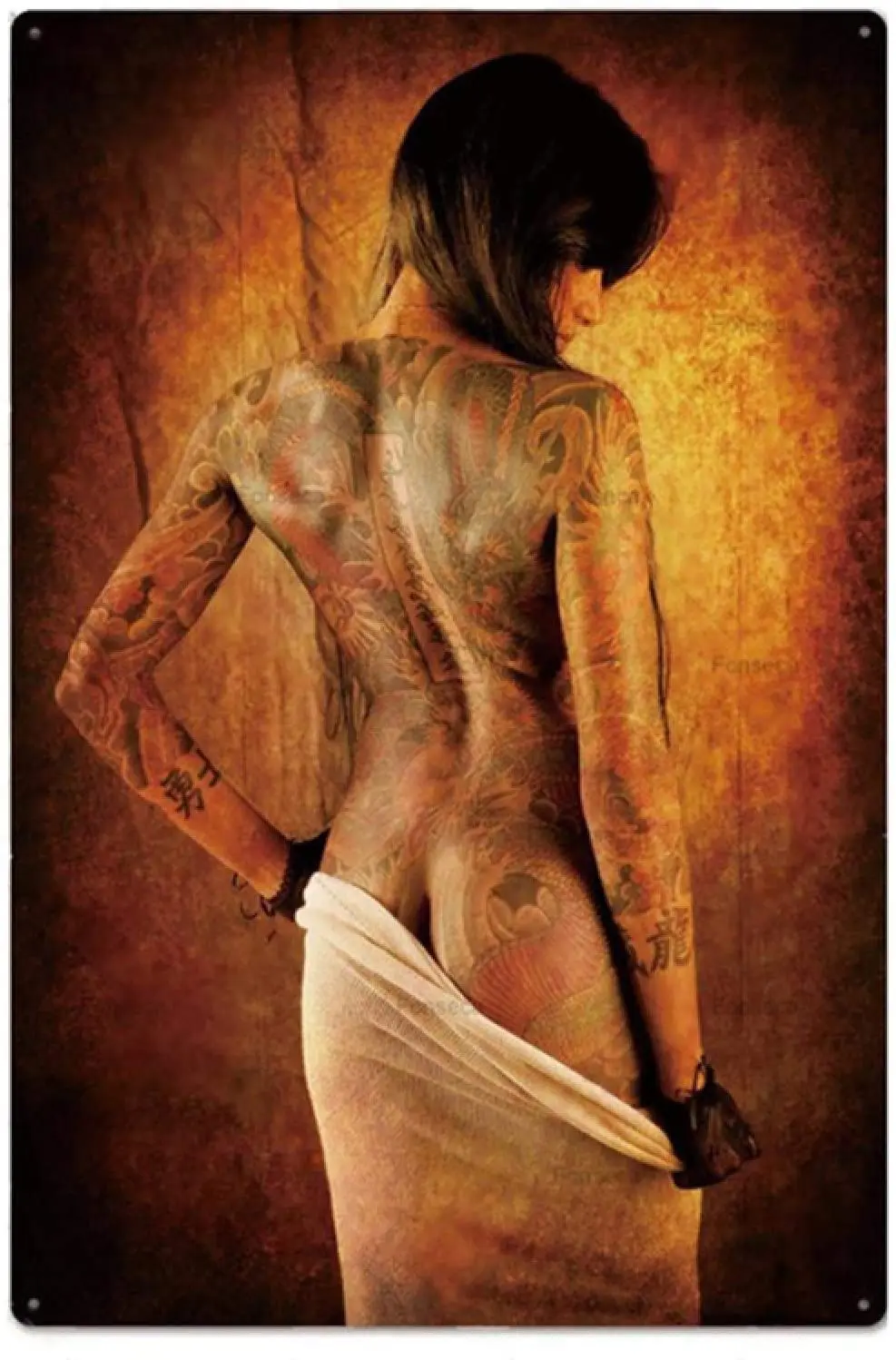 Жестяной знак с татуировкой, украшение для стен в стиле фотостудии, привлекательная Женская металлическая вывеска, знак в виде пещеры, жестяная пластина, постер, табличка 20x30 см, 7 дюймов