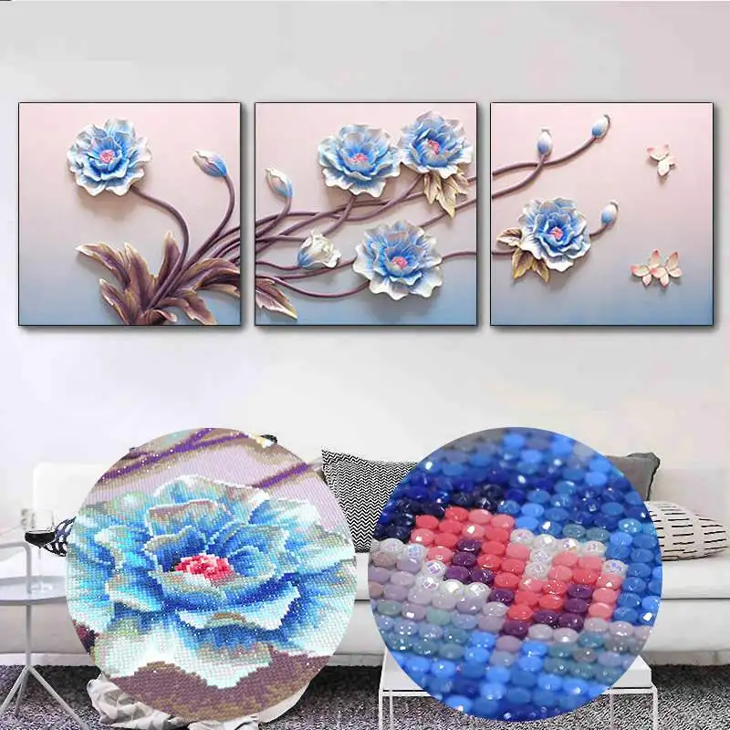 AB, изготавливаемый по методу "сделай сам" новый поделки Алмазная Вышивка Полный Бриллиант Настенные обои для украшения с голубыми цветами комплект из 3 предметов специальное алмазная живопись