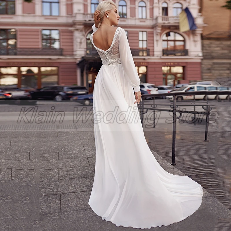 Элегантное шифоновое платье-трапеция с V-образным вырезом и длинным рукавом, с аппликацией, богемные свадебные платья, 2021