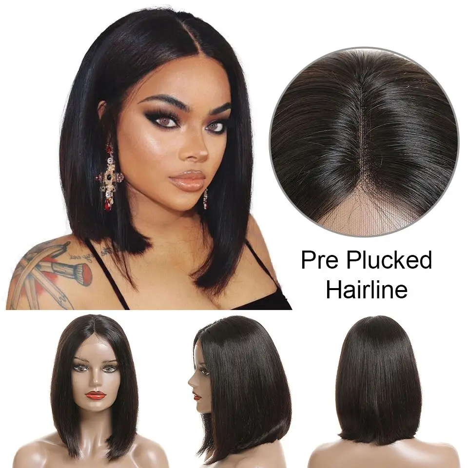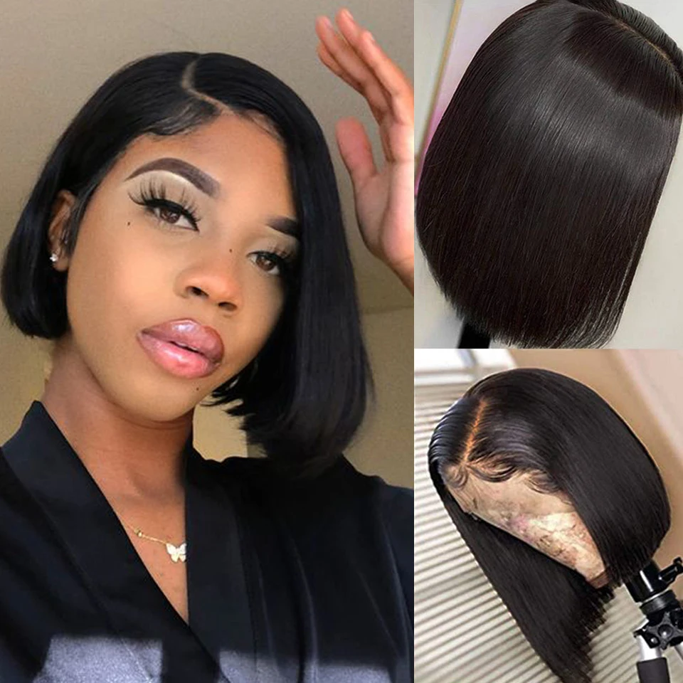 Короткий парик Боб 13*4 прямой парик из натуральных волос на кружеве 8-14 дюймов 180% Плотность прямой Боб предварительно выщипанный парик из натуральных волос для женщин