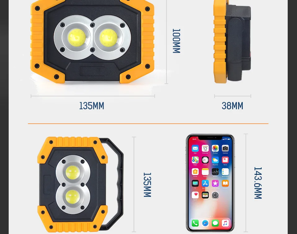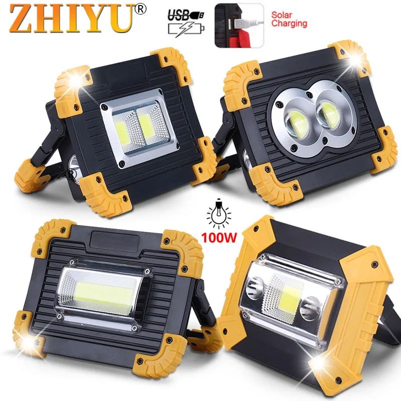 Портативный светодиодный прожектор с USB зарядкой, 100 Вт, суперъяркий светодиодный светильник для улицы, кемпинга, палаток, фонарь с аккумулятором 18650