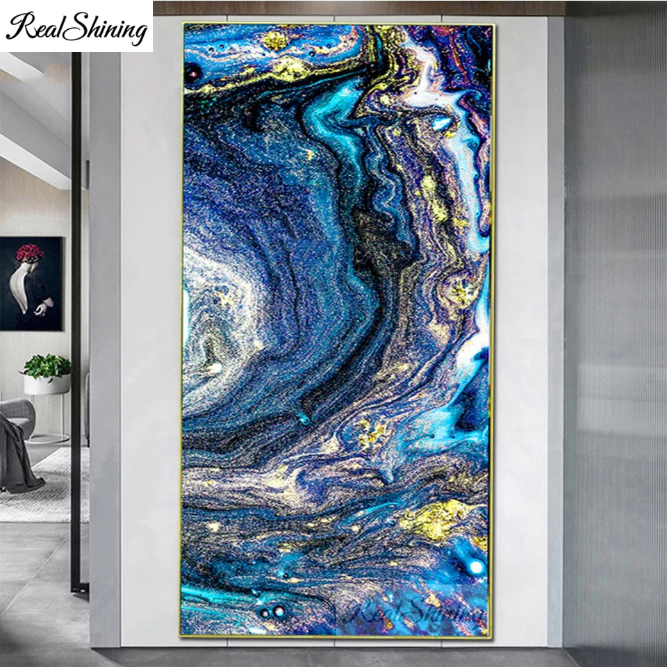 Большие картины, украшение комнаты, абстрактная синяя Золотая волна, алмазная живопись, полная квадратная Круглая Мозаика, алмазная вышивка F740