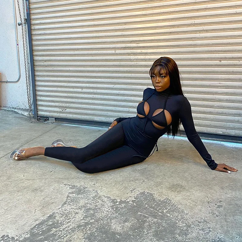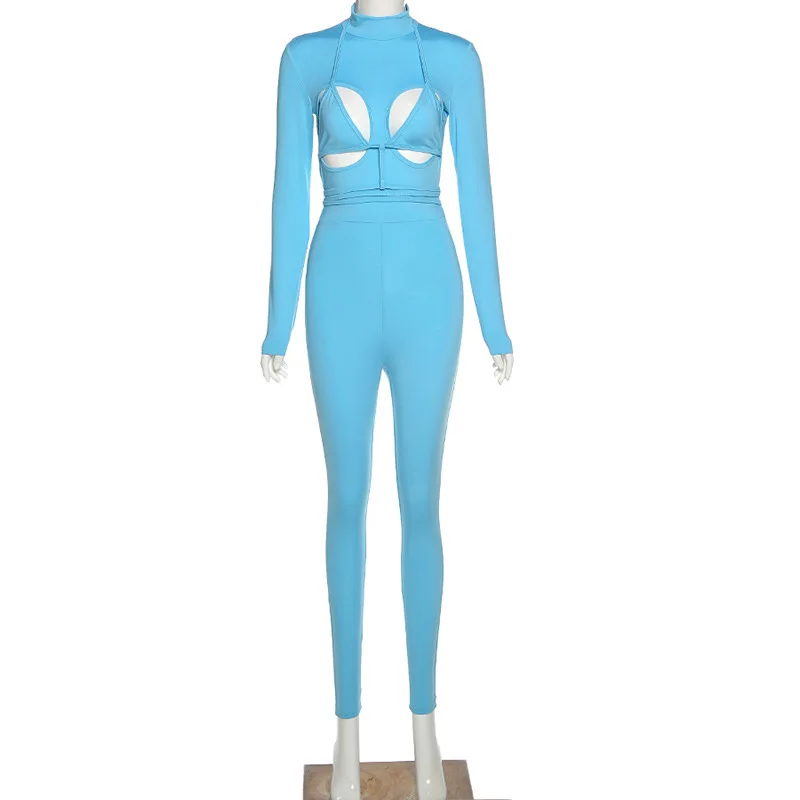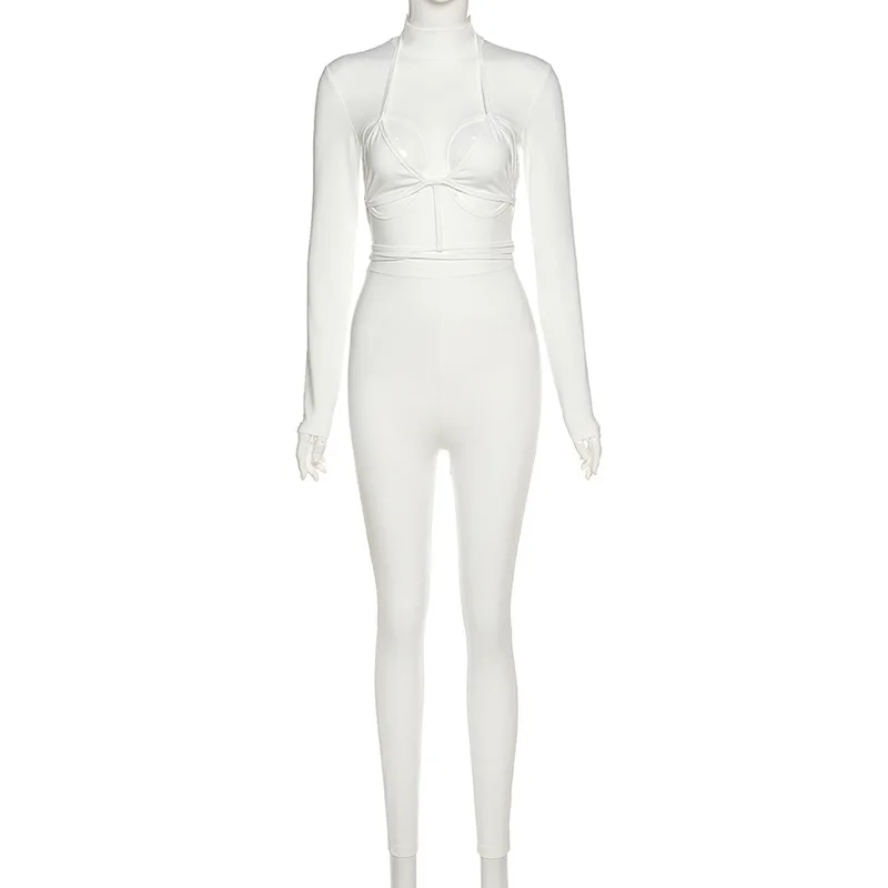 Женский Облегающий комбинезон, повседневный ажурный комплект из двух предметов, леггинсы с длинным рукавом, боди, комбинации