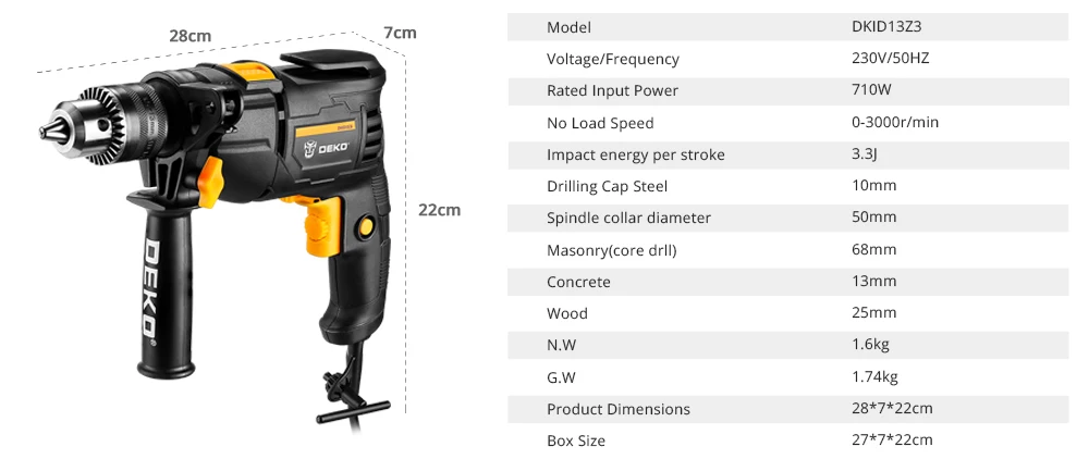 Дрель ударная DEKO DKIDZ, 220 В, 2 функции