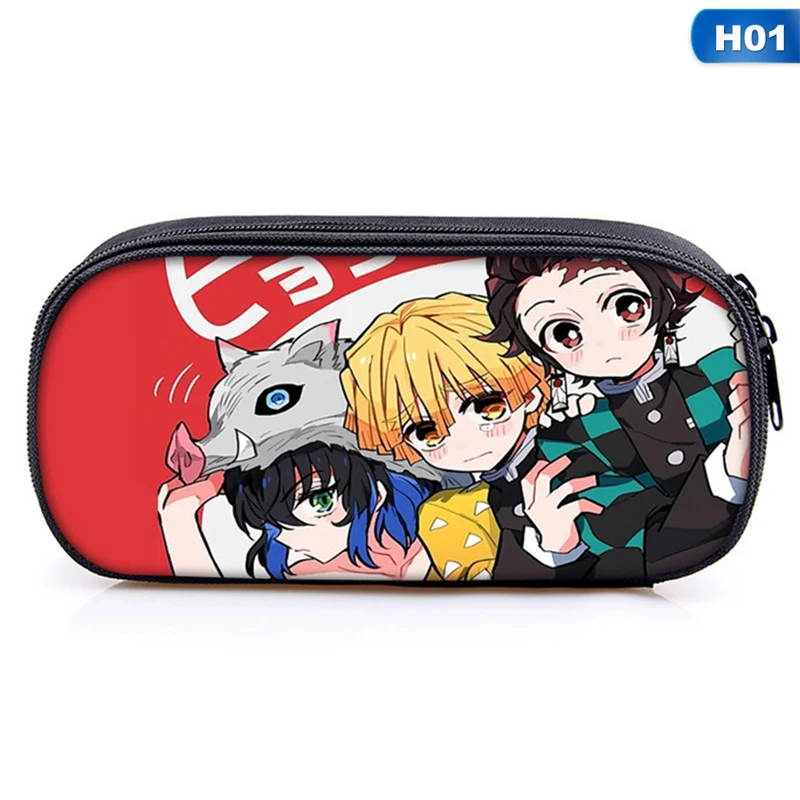 Пенал с аниме Demon Slayer Kimetsu No Yaiba, шкатулка на двойной молнии с дьявольским лезвием, канцелярский чехол для студентов