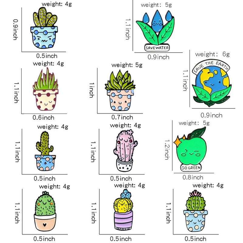 Эмалированные заколки в виде мультяшных растений, милые значки в го...
