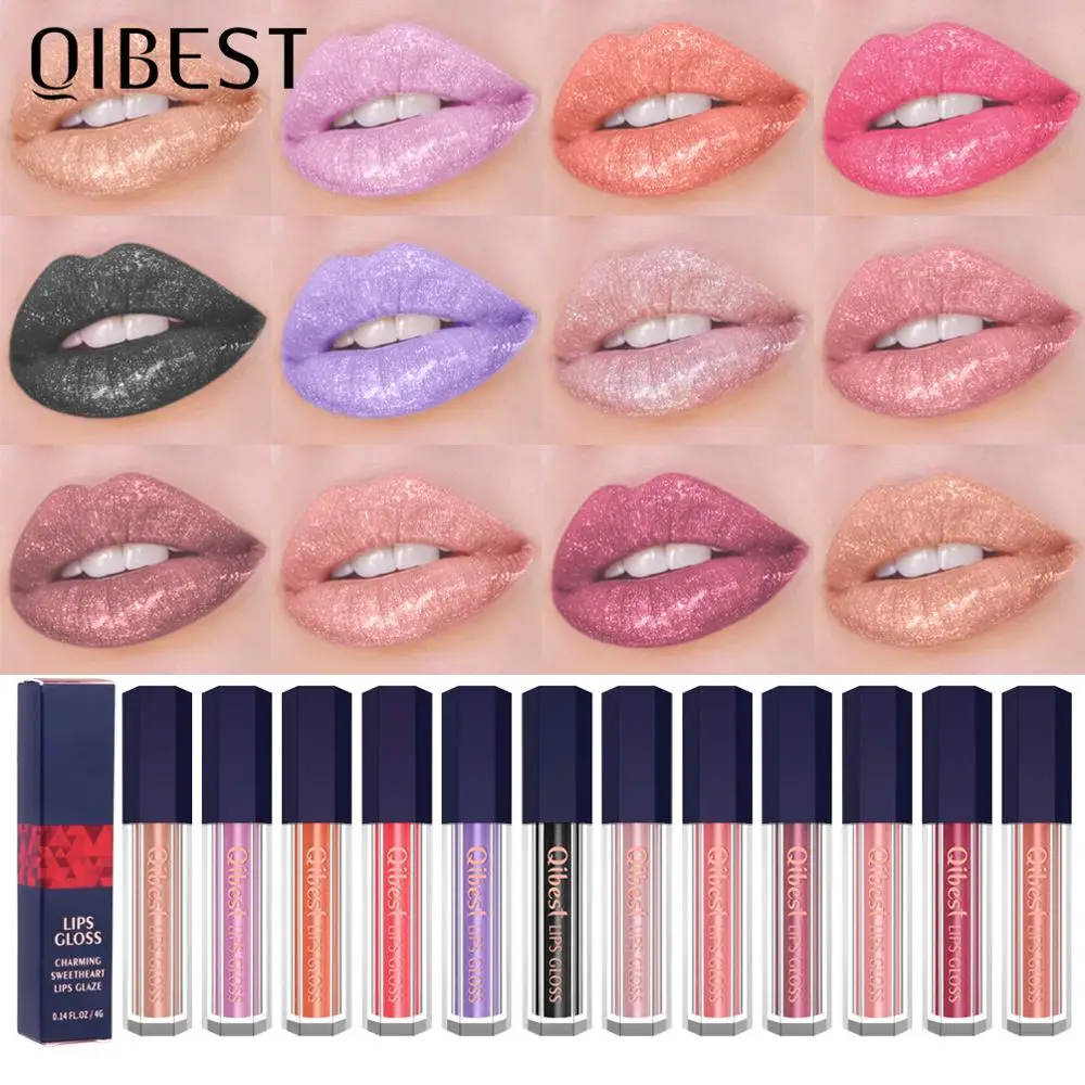 QIBEST 12 Цветов мерцание, жидкая помада блеск для губ Водонепроницаемый стойкая губная оттенок с гладкой текстурой для макияжа, косметика для губ