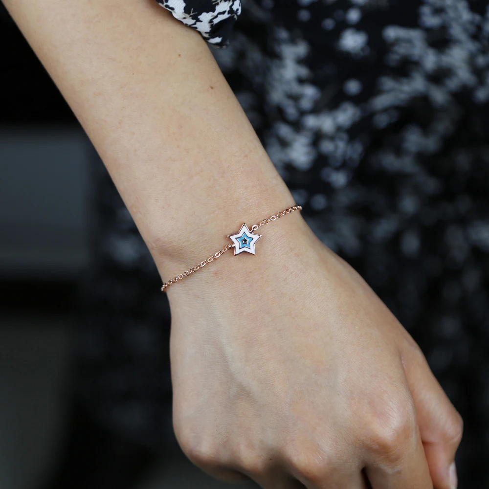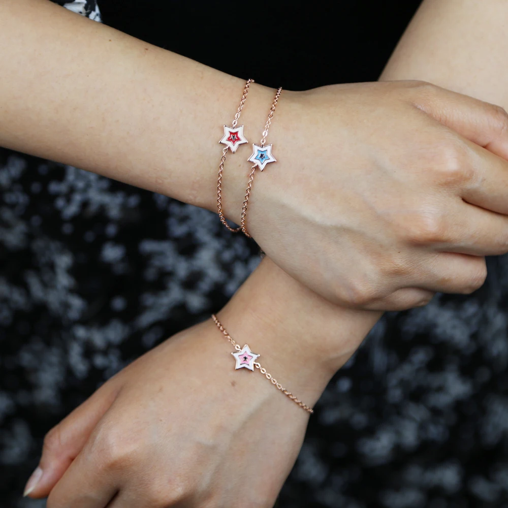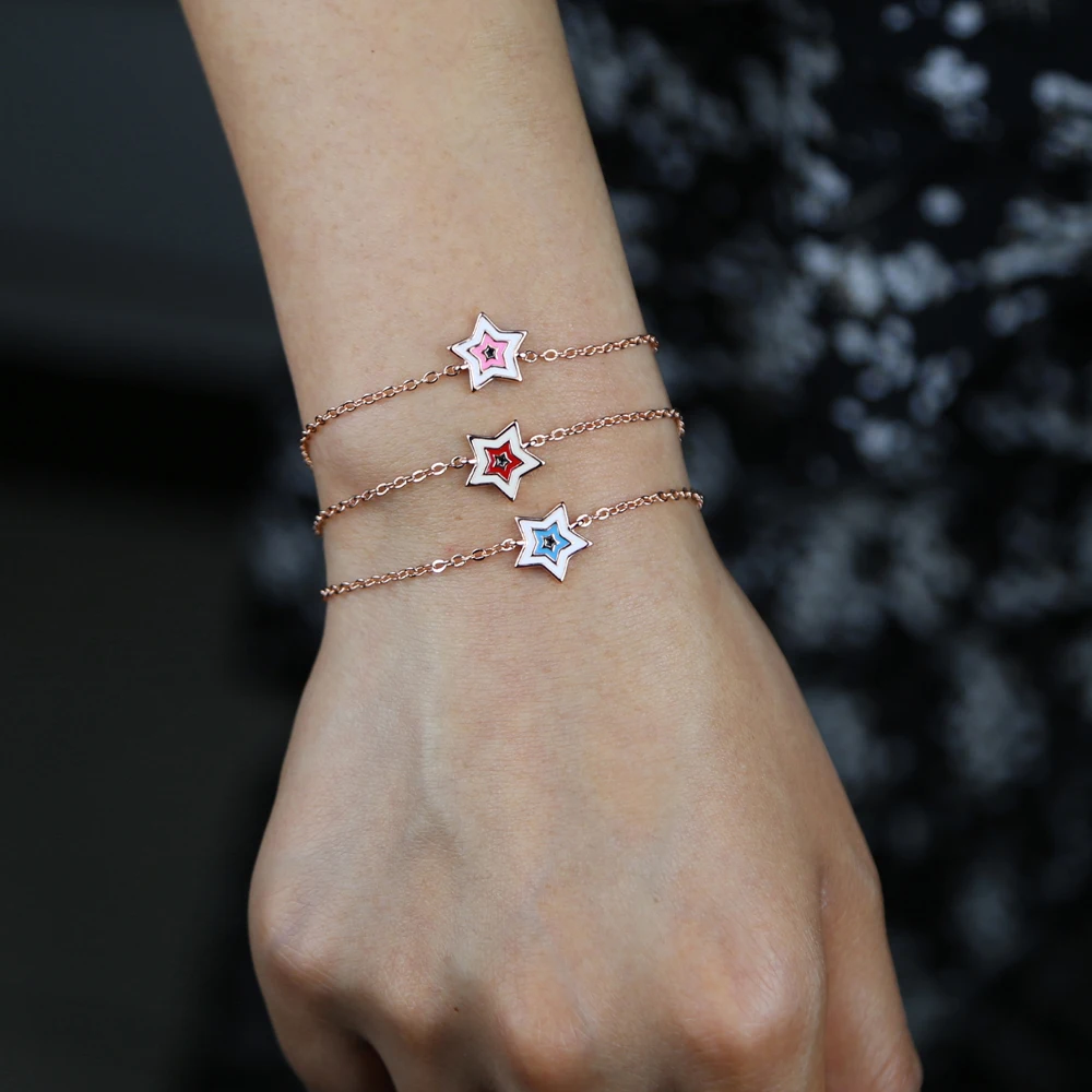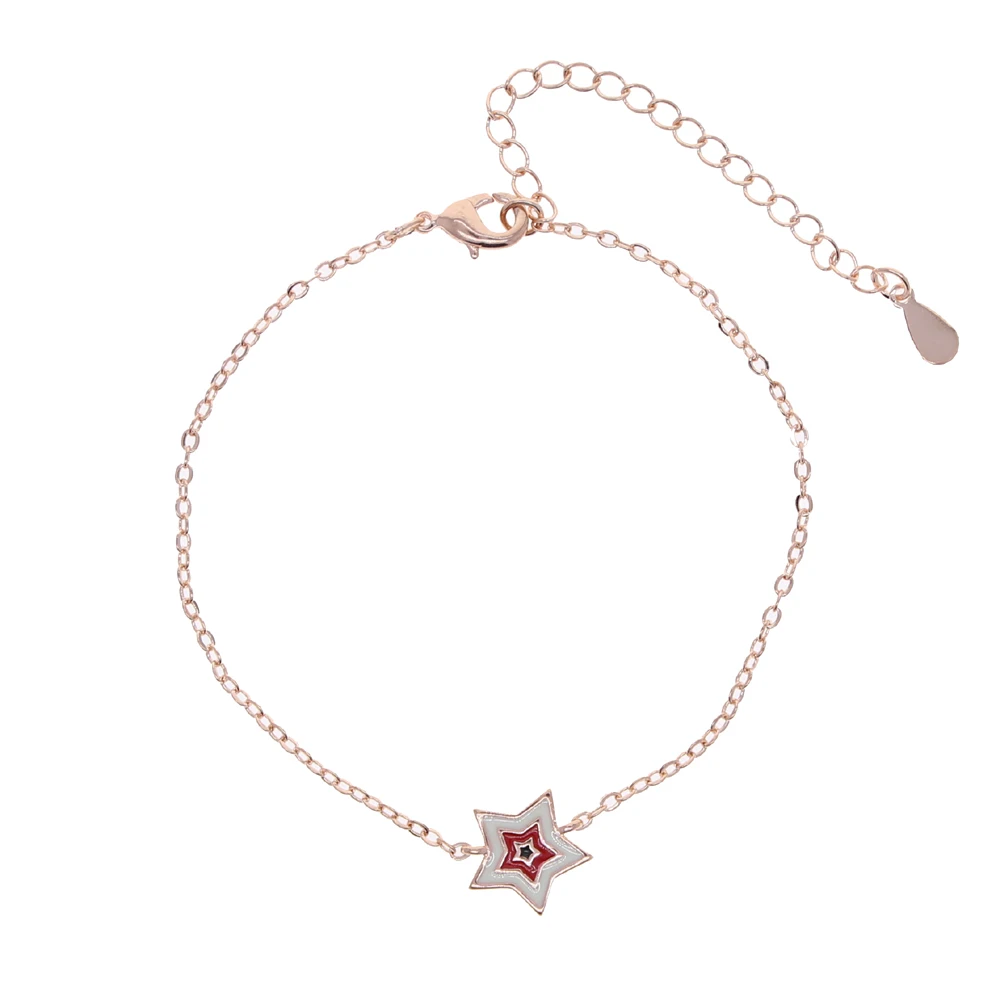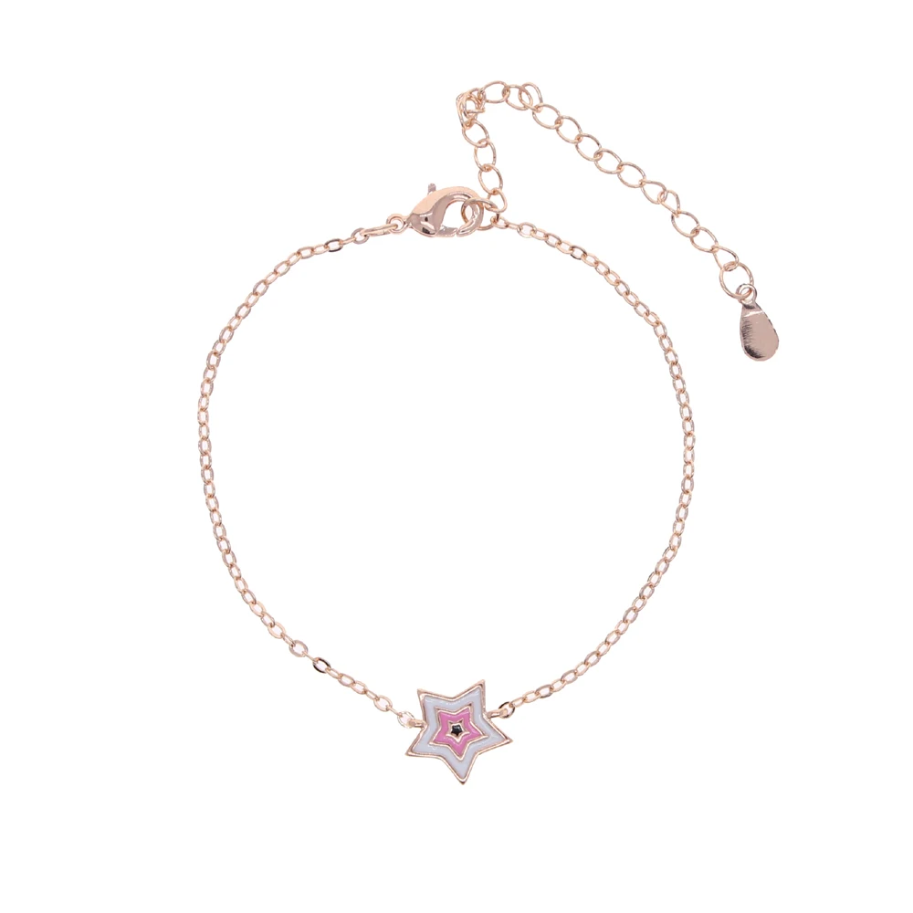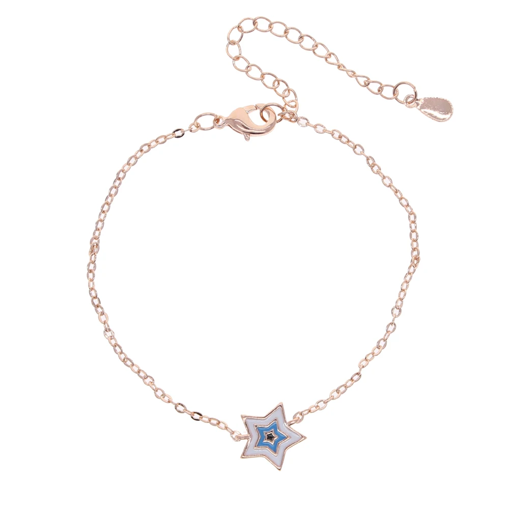 Новый стиль нежный браслет для девочек синийрозовыйкрасный милый браслет со звездами тонкая цепочка Женская мода одиночные украшения 16 + 5 см