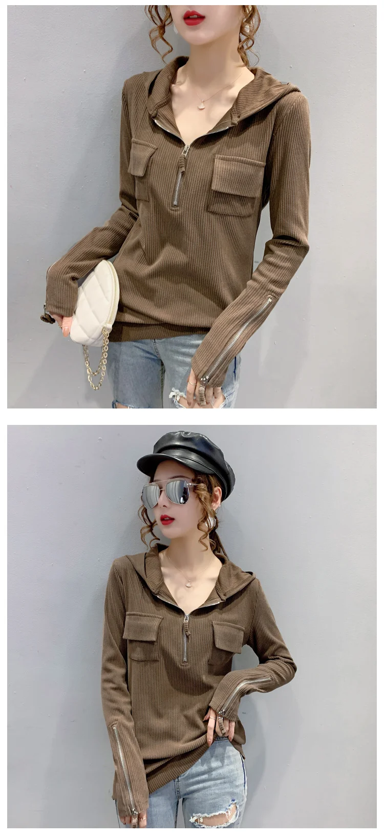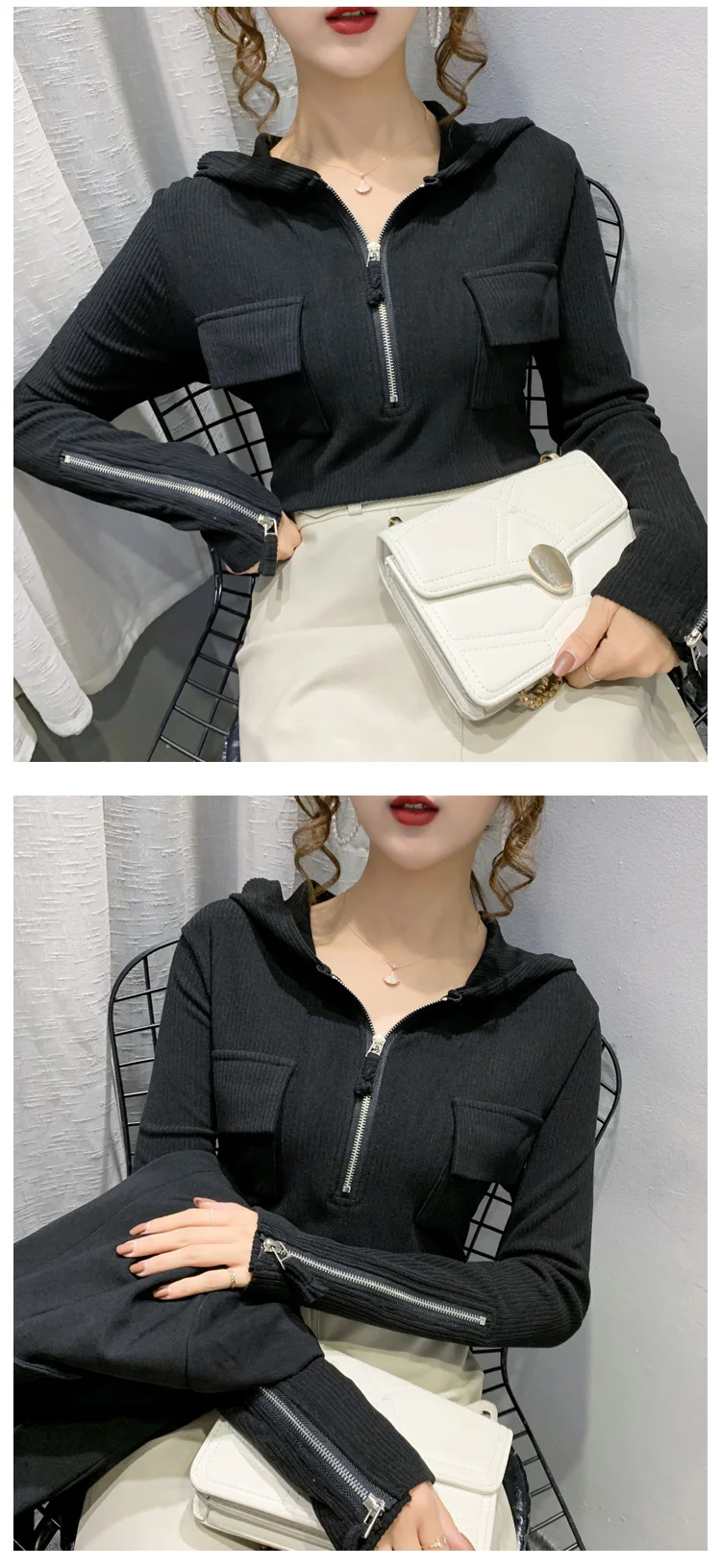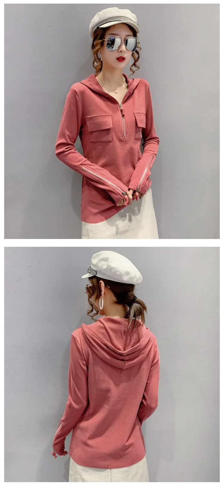Свитер женский на молнии с капюшоном #6537, Повседневный, приталенный, весна-осень