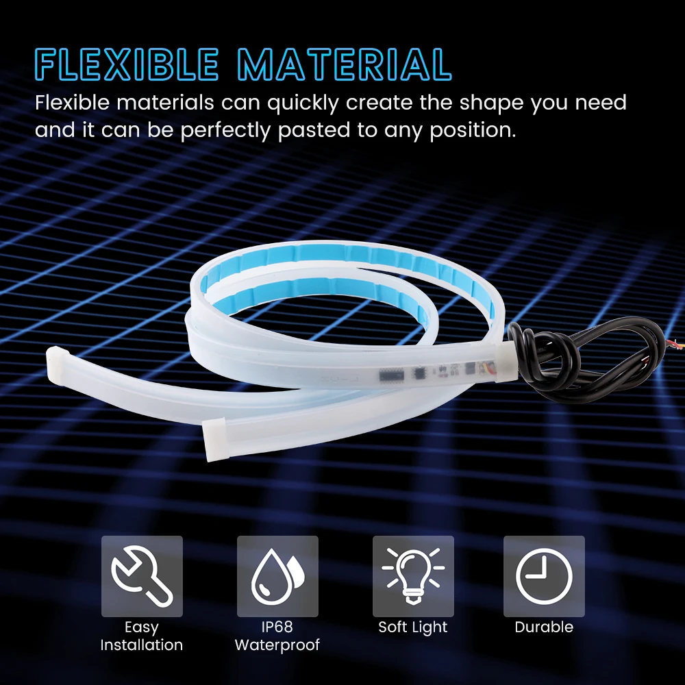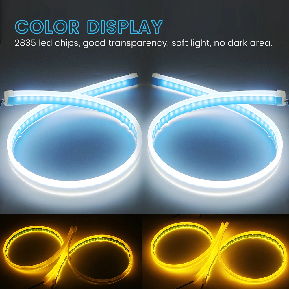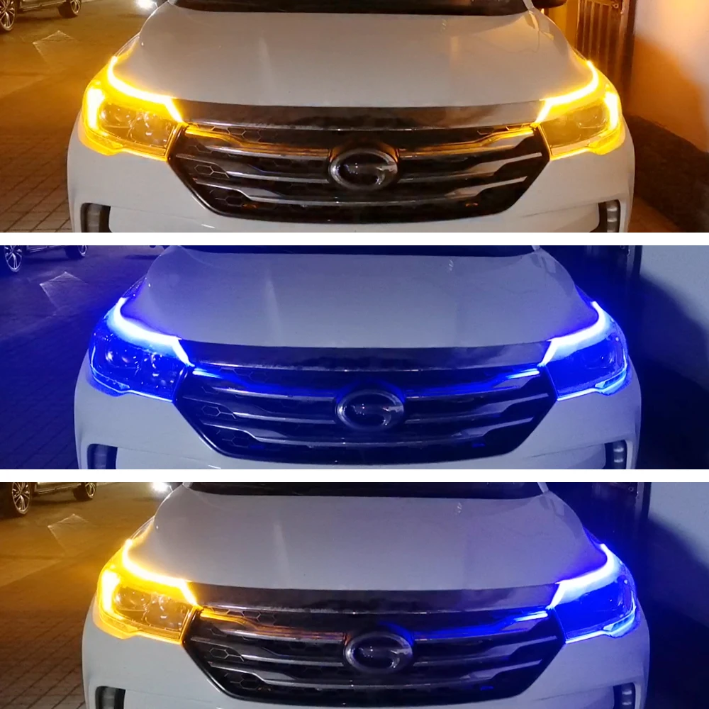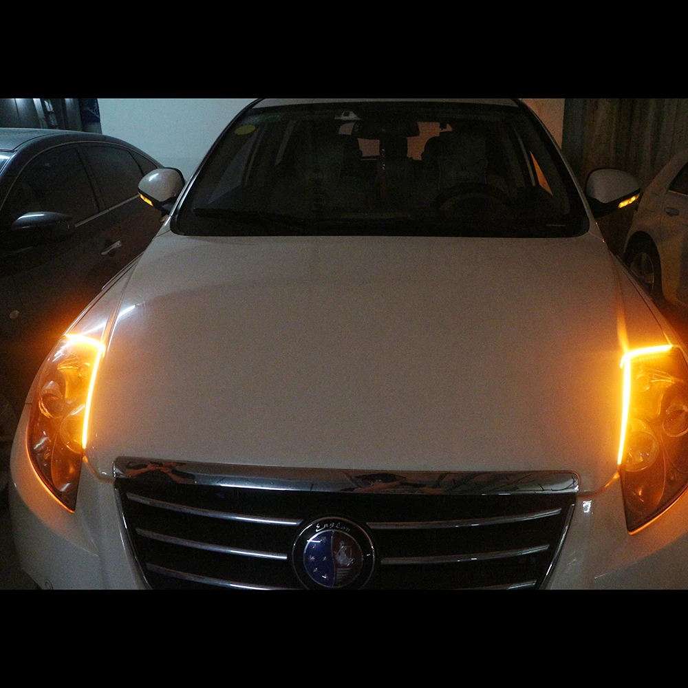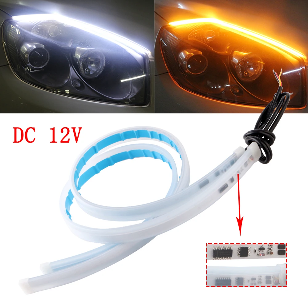 DC 12V 24V 2 шт. белыйсиний и желтый 30 см x 45 см 60 см машинками) стример течет гибкие дневные ходовые огни светильник сигнала поворота Светодиодные ленты