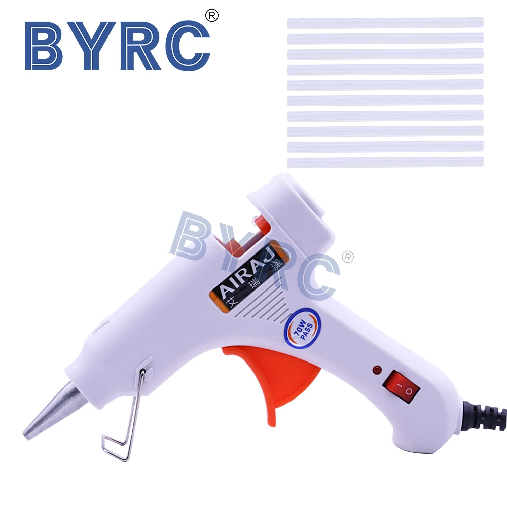 Термоклеевой пистолет 110-240 в 70 Вт, мощный клеевой пистолет с европейской вилкой, инструмент для ремонта сделай сам, термоклеевой пистолет, 10 шт. клеевых карандашей