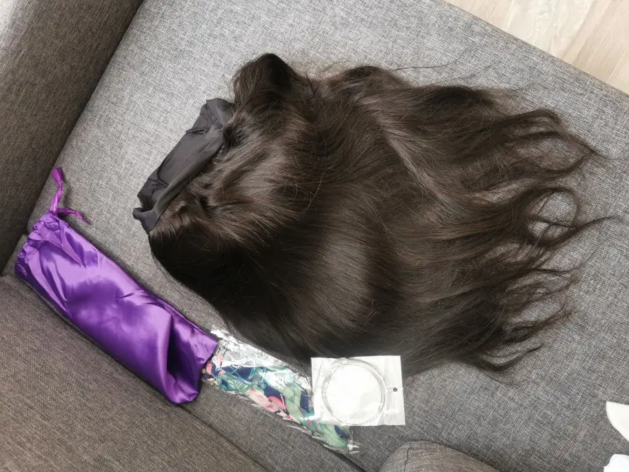 Парик сделан очень хорошо, только немного большой защитный чехол для моей маленькой головы. Я стираю и волосы стали волнистыми.