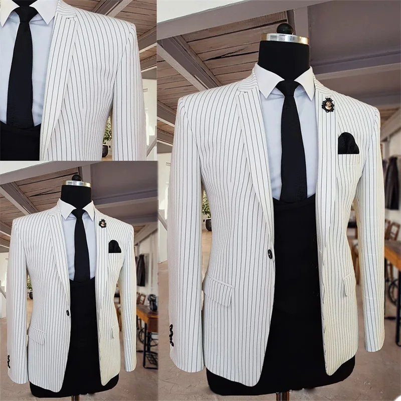 Цельные белые мужские костюмы в полоску смокинг для жениха с лацканами одна пуговица индивидуальный пошив приталенный деловой вечерний Выпускной пиджак верхняя одежда