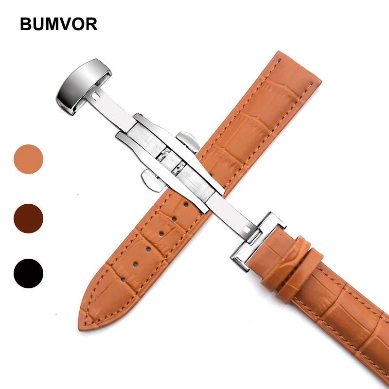 Ремешок для часов 14-24 мм для мужчин и женщин, Браслет С Рисунком бабочки, раскладная застежка, + браслет из натуральной кожи