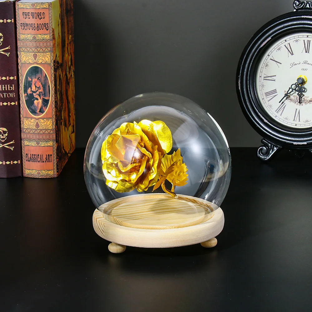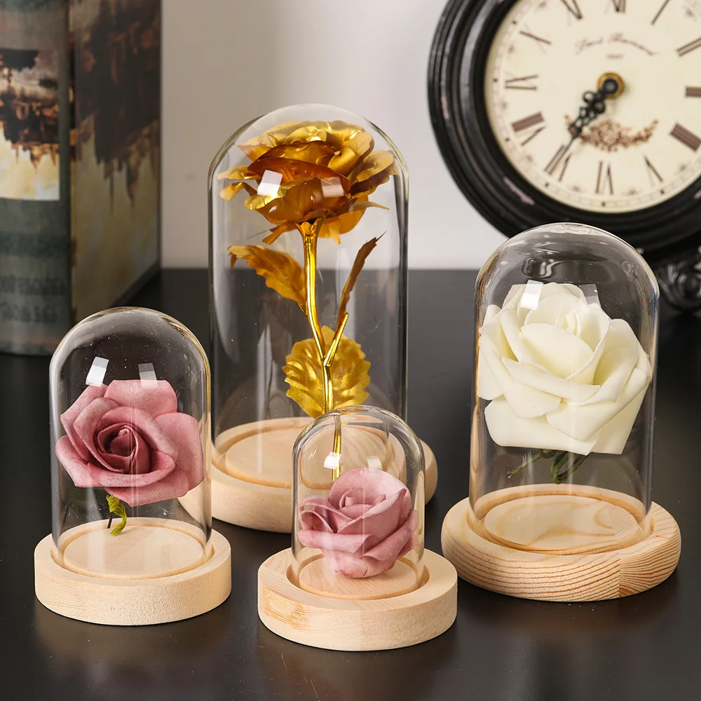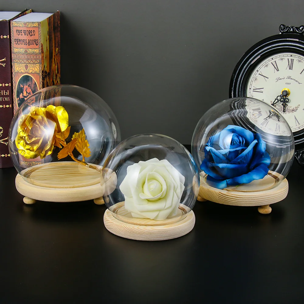 Стеклянная прозрачная бутылка-колокол для террариума, подставка для выставки, с деревянным основанием, пылезащитная крышка, неувядающая коробка для цветов, настольное украшение