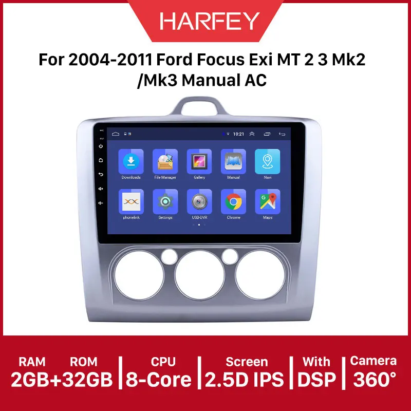 Автомобильный мультимедийный плеер Harfey, Android 10,0, 9 ", 2Din, GPS, радио для ford focus EXI MT 2 3 Mk2 2004 2005 2006 2007 2008 2009-2011