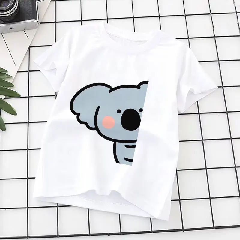 Детская одежда, милые футболки с принтом коала и животных для девоч...