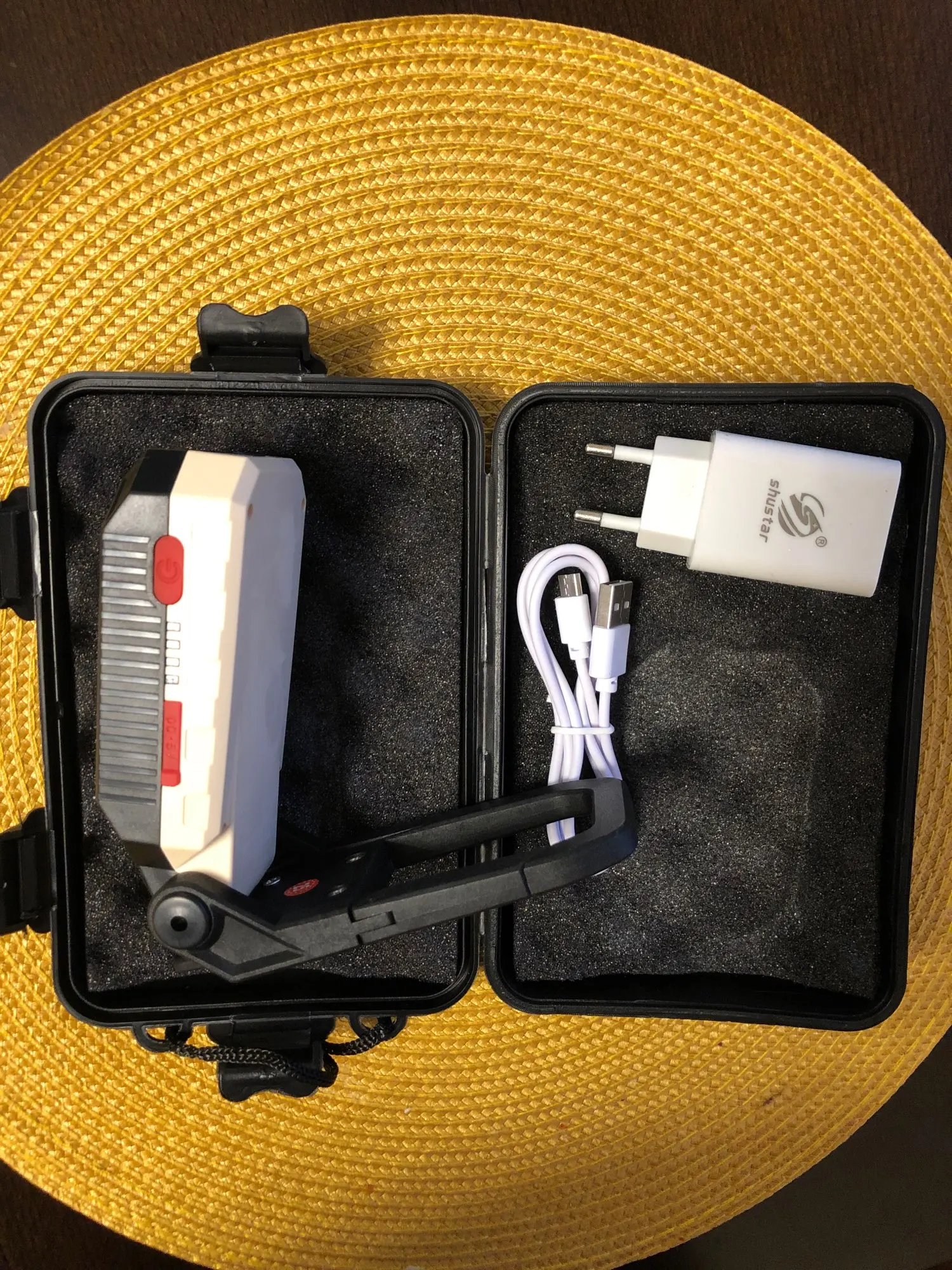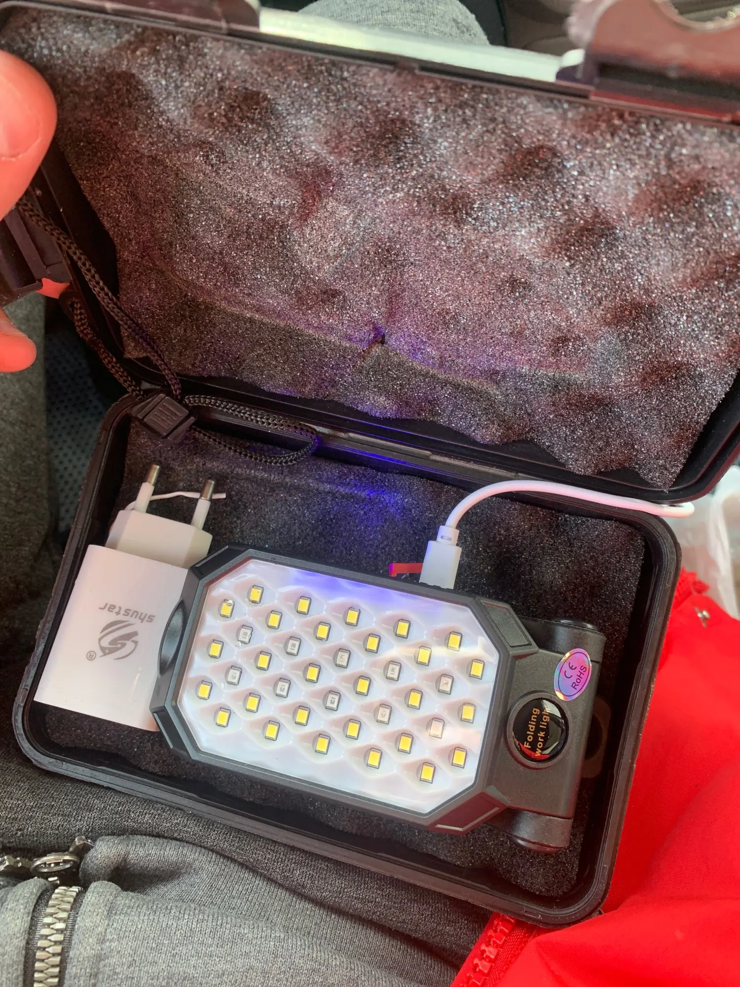 Крутой фонарь, заряда на сколько хватит ещё не засекал, на нем есть магнит, можно подвесить, можно на штатив накрутить, можно использовать как фонарь, как педальку и как светомузыку, возможно подойдет для аквадискотеки, надо пробовать