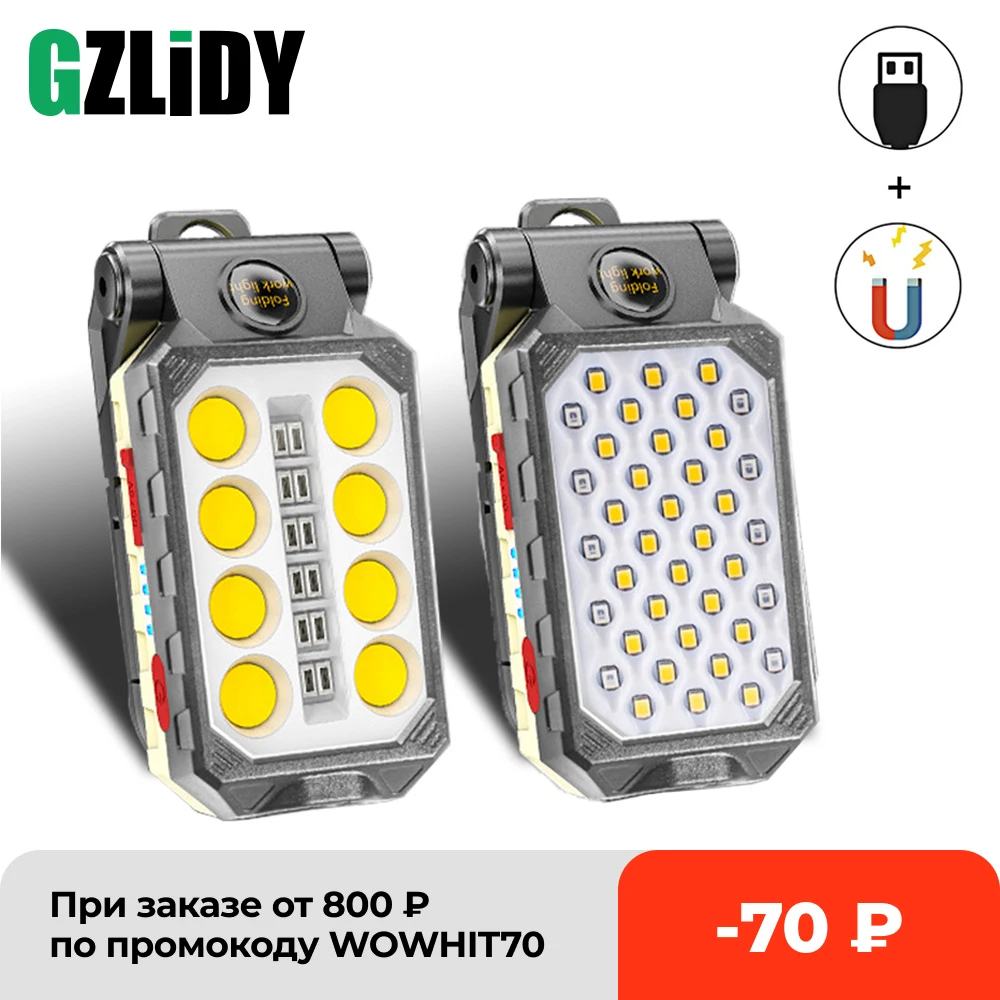 USB перезаряжасветильник Рабочий фонарь COB, портативный светодиодный фонарь, светильник емый водонепроницаемый фонарь для кемпинга с магнитным дизайном и дисплеем мощности