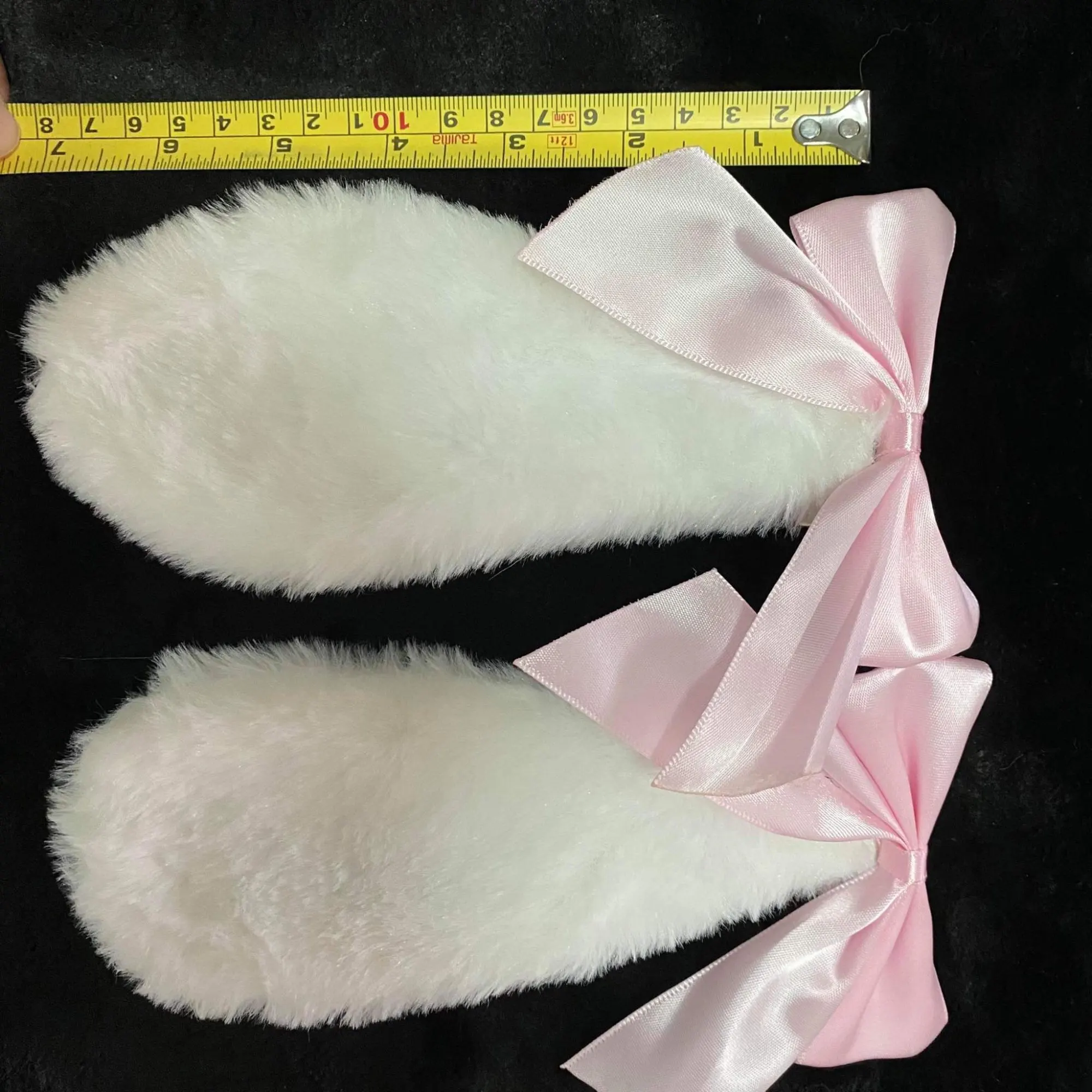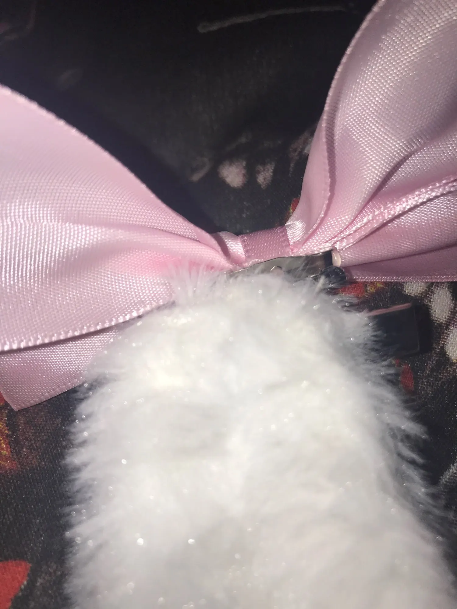 I loveeee this! It’s super cute! Bigger than I thought! Which, isn’t a bad thing :3 the bow is pinned on the top of the ear tho. There’s a little hole where the pin goes though, and the bow could move. But that’s not a big issue :3 overall! Love it