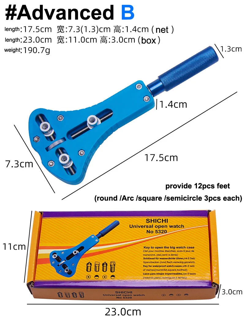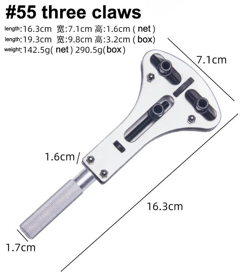 Набор инструментов для открывания корпуса часов, инструмент для удаления задней крышки часов, 3 зажима, винта, гаечный ключ с открытым зевом