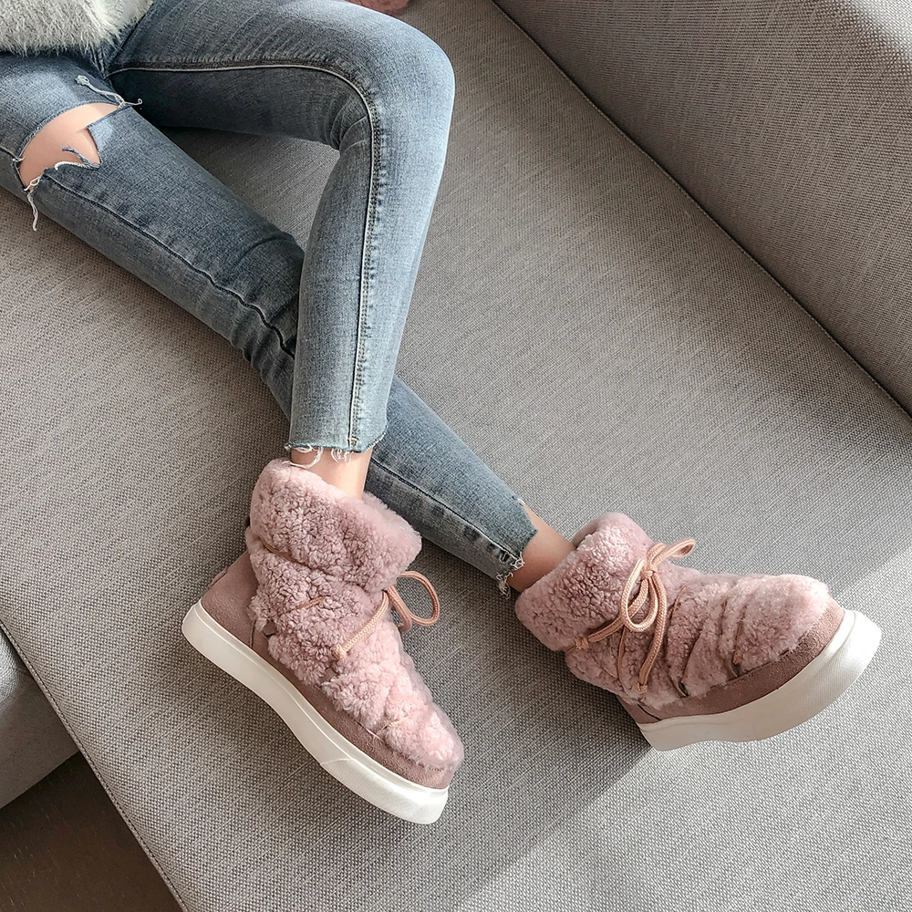 уги женские зима Женские Водонепроницаемые ботинки kickway из натуральной коровьей замши с натуральным мехом, теплые зимние ботильоны для женщин, водонепроницаемые кроссовки, обувь 42