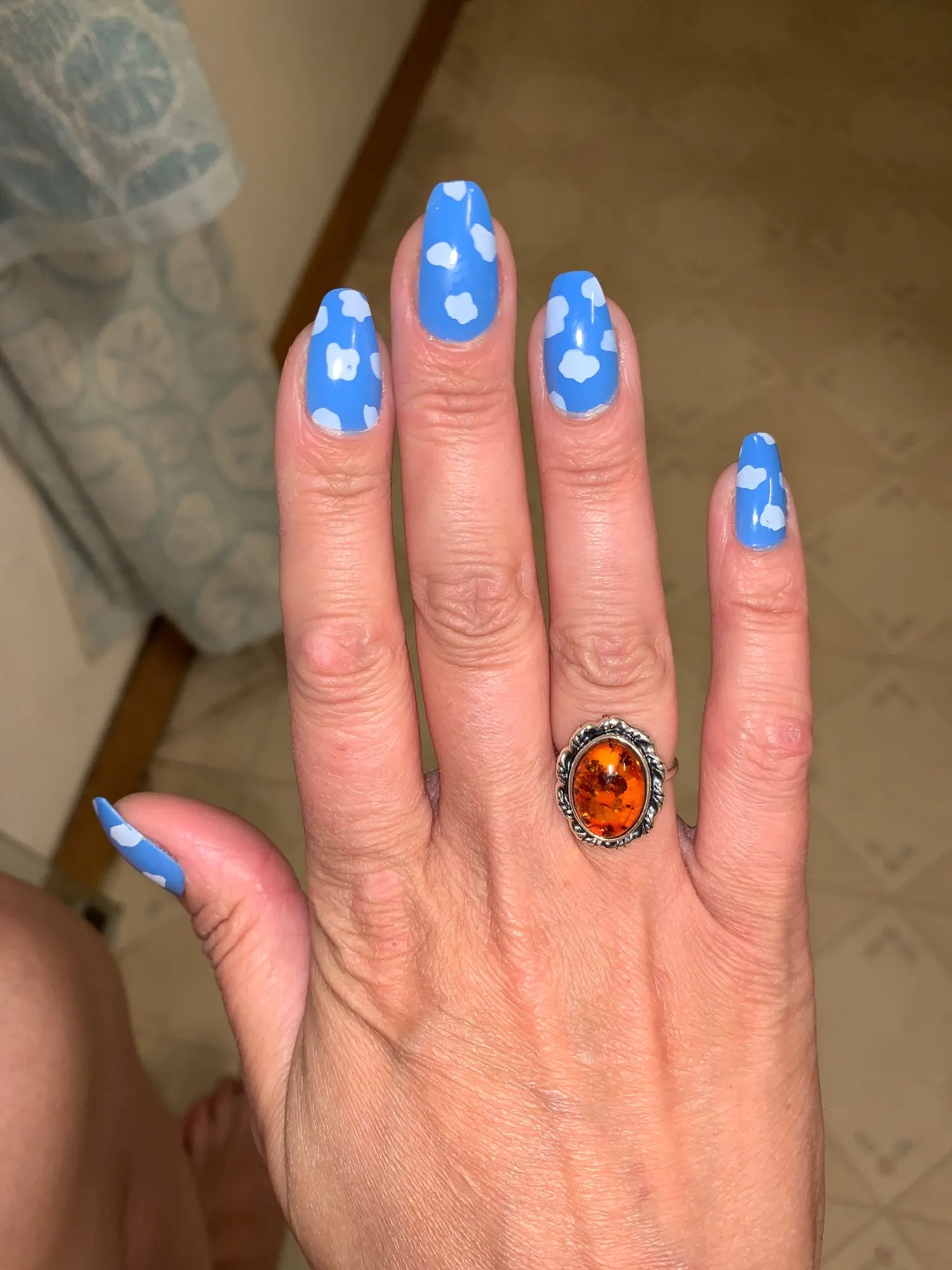 Накладные ногти на французском стиле, 24 шт., накладные ногти небесно-голубого цвета, для пляжа, облако, женские накладные ногти, дизайнерские накладные ногти с клеем