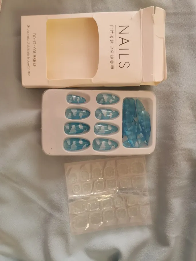 Все ногти в хорошем состоянии. В целом всë неплохо, но клей имеет неприятный запах.