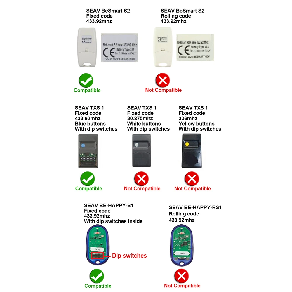 SEAV TXS 1, 2, 3, 4, 6 дубликатор дистанционного управления 433,92 ...