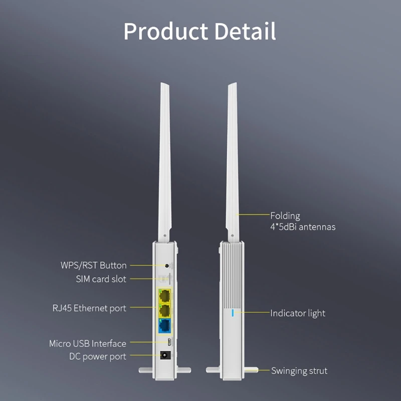 100% новый и высокое качествоOOTDTYХарактеристика:Корпус маленький и может быть гибко помещенЕго можно использовать, вставляя карту, не требуется широкополосная сеть, поддерживая карту 4G, простая настройкаПолное покрытие с 4 антеннами, широкое покрытиеСпецификация:Бренд: COMFASTМодель: CF-E3Тип штепсельной вилки: штепсельная вилка стандарта СШАДиапазон поддержки частот: 4G/3G/2GFDD: B1 2100 МГц, B3 1800 МГц, B5 850 МГц, B8 900 МГцTDD: B34 2015 МГц, B38 2600 МГц, B39 1900 МГц, B40 2300 МГц, B41 2500 МГцTD-SCDMA: B34 2100 МГц, B39 1900 МГцWCDMA/HSPA +: B1 2100 МГц, B8 900 МГцGSM: B5 850 МГц, B8 900 МГц, B3 1800 МГцЧип материнской платы: для процессора Qualcomm QCA9531 650MHz с засорением промышленного класса; Модуль CLM920AC3;Память: 64 Мб; Флэш-память: 8 Мб;Антенна: 2,4 ГГц: 2 X 5dBi всенаправленная антенна 4 ГГц: 2 X всенаправленные антенныСкорость: 2,4 ГГц: 300 Мбит/сLTE Cat4: 150 Мбит/с (DL MAX) 50 Мбит/с (UL MAX)Физический интерфейс:1x 10/100 Мбит/с RJ45 WAN Ethernet порт2x 10/100 Мбит/с RJ45 LAN Ethernet порты1x слот для sim-карты; 1x Интерфейс MICRO USB1x Кнопка сброса1x интерфейс питания постоянного токаСветовой светильник: трехцветный световой светильник, 3-кратный сетевой световой светильник sПитание: 12V 1AМощность Потребляемая мощность: Ã ¢ ÂÂ ¤ 11WУровень защиты: P31Способ установки: рабочий стол, стенаИспользование окружающей среды:Рабочая Температура: -10Ã Â °C ~ 55Ã Â °CДля хранения Температура: -40Ã Â °C ~ 70Ã Â °CРабочая влажность: 10% ~ 90% RH без конденсацииВлажность хранения: 5% ~ 95% RH без конденсацииРазмер продукта:Общий размер: 14.95x11x2.6 см/5.89x4.33x1.02inАнтенна Длина: 17,5 см/6,89"Размер упаковки: 387x215x5 5 мм/15.24x8.46x2.17inВес брутто: 600 гПримечание:Возможны отклонения в 0-3 см вследствие измерений вручную. Пожалуйста, убедитесь, что вы не возражаете, прежде чем сделать ставку.Из-за разницы между различными мониторами изображение может не отражать фактический цвет изделия. Спасибо!Посылка включает в себя:1 x WIFI роутер1 х адаптер питания1 х Руководство