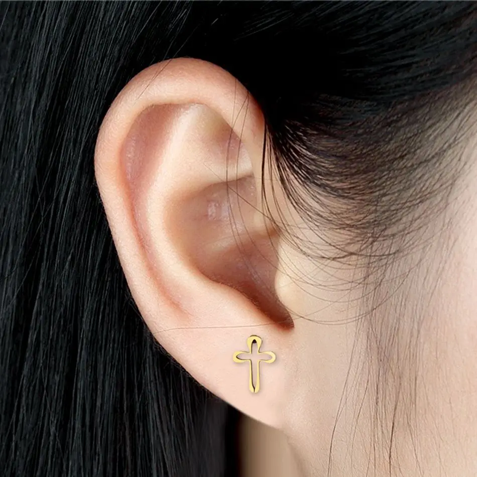 Название: серьги с крестомМатериал: нержавеющая стальВысокое качество на 100% абсолютно новыйЦвет: золотые серьгиПреимущество: не вызывает аллергии, не выцветает
