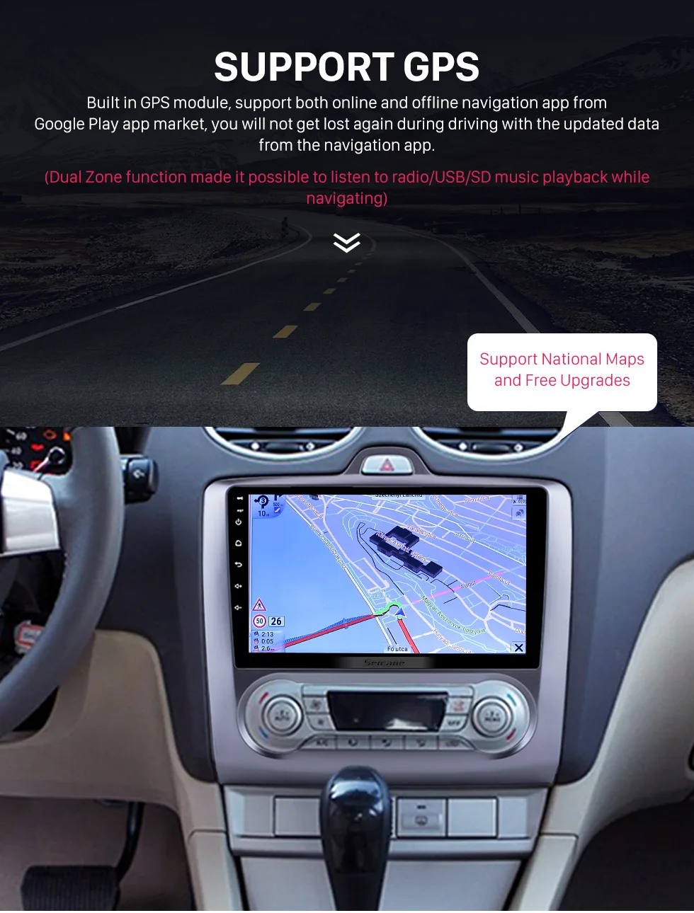 Seicane 2 DIN 9 дюймов Android 9.0 GPS навигация Сенсорный экран четырехъядерный автомобильный РадиоДля 2004 2005 2006 2007 2008 2009 2010 2011 Ford Focus Exi AT