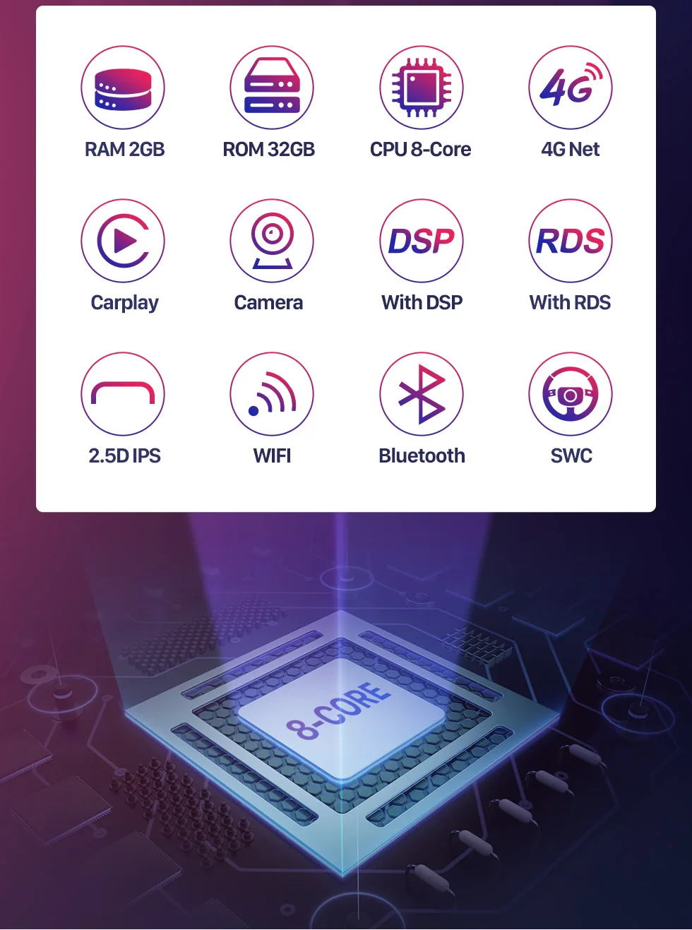 Примечание: Система android 8,1/Android 9,1 не поддерживает RDS/IPS/DSP