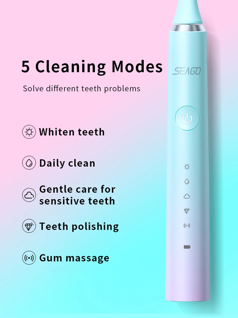 Seago новейшая звуковая электрическая зубная щетка для взрослых 5 режимов умный таймер USB перезаряжаемая зубная щетка SGS2 сменная щетка подарочная коробка