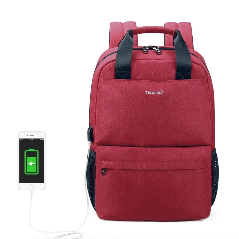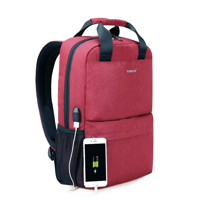 Городской рюкзак Tigernu T-B3508 сочетает в себе функциональность, вместительность и безупречный стиль. Он подходит для путешествий, прогулок, учебы или работы. Выполнен из прочного и качественного материала Оксфорд, который устойчив к влаге и механическим повреждениям. Имеет фирменную фурнитуру и ровные крепкие швы в местах повышенной нагрузки, в частности – в районе лямок и ручек. За счет этого рюкзак может выдержать очень большой вес. Вес рюкзака 850 грамм. Эта модель отличается своей вместительностью. Она состоит из основного отделения и карманов, расположенных спереди, по бокам и на одной из лямок. В основном отделении предусмотрен отсек для переноски ноутбука с диагональю экрана 15,6 дюймов. Он надежно защитит его от ударов благодаря укрепленным стенкам. Специальная лента с фирменным знаком бренда закрепляет ноутбук внутри отделения. Небольшие карманы внутри основного отсека предназначены для размещения мобильного телефона, зарядного устройства, мобильных или компьютерных аксессуаров, канцелярских принадлежностей. Важная особенность модели – наличие USB-порта для зарядки гаджетов. Достаточно подключить к нему Power Bank через USB-провод, а с другой стороны – подсоединить мобильное или компьютерное устройство, чтобы зарядить его. Передняя часть рюкзака оснащена несколькими карманами для журналов, книг, документов и бумаг формата A4. Нижнее отделение закрывается на потайной замок и подходит для хранения разных мелочей. По бокам модели предусмотрено два кармана-сетки для бутылок или зонта. Лямки рюкзака порадуют своим комфортом и возможностью регулировки длины. В лямках рюкзака расположились: потайной карман для банковских карт и держатель для очков.