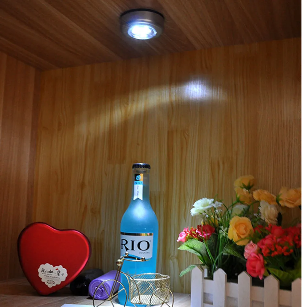 Налобный фонарь на 3 светодиодах серебро гардероб шкаф лампа Батарея приведенный в действие Беспроводной Стик Нажмите сенсорный пуш-ап безопасности Кухня Спальня Ночной светильник 1 шт.