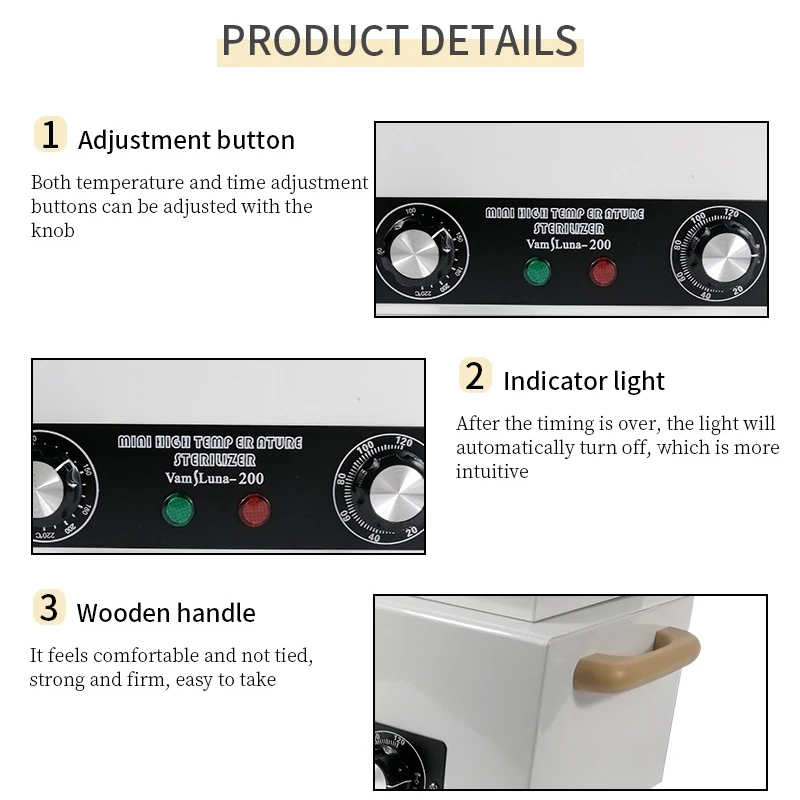 VAMSLUNA-200 300 Вт Портативный стерилизатор высокой температуры с сухим нагревом медицинский автоклав инструмент для маникюра стерилизатор для маникюра и педикюра
