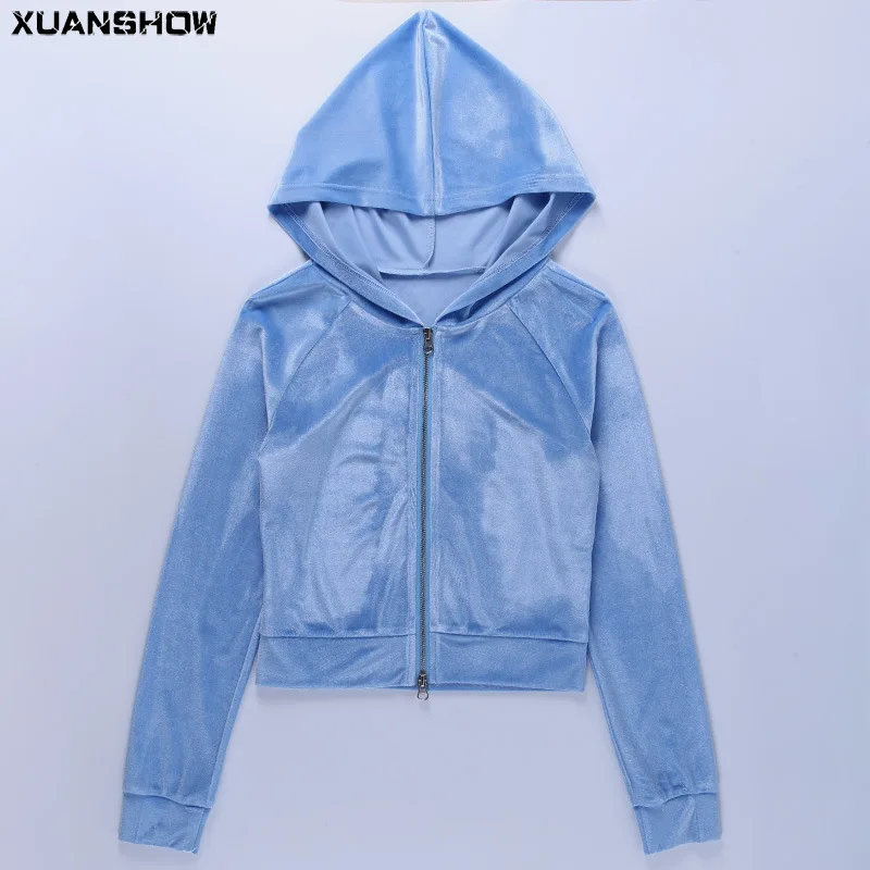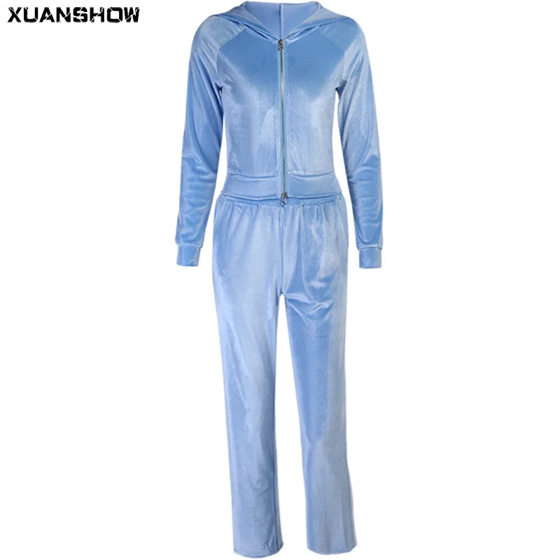 Женский Бархатный спортивный костюм из 2 предметов, вышивка с ангелом, укороченный топ на молнии, толстовка + длинные штаны