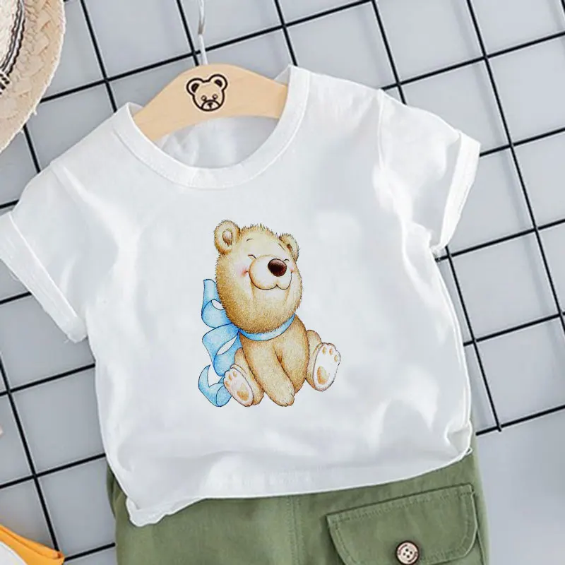 Детская летняя футболка, белая футболка с коротким рукавом, топы дл...